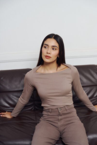 Remera confeccionado en ribb algodon con viscosa con cuello vote.