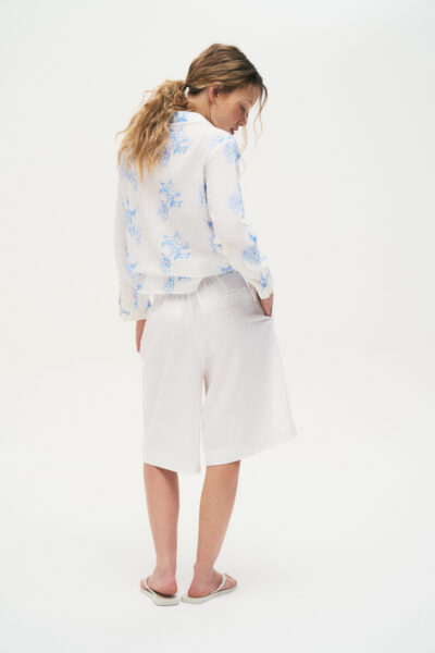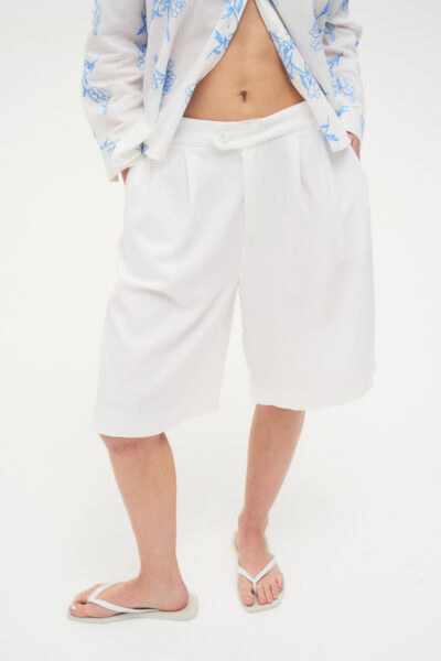 Bermuda de lino sastrero con pinza en la cintura de atrás.