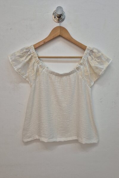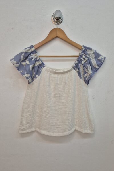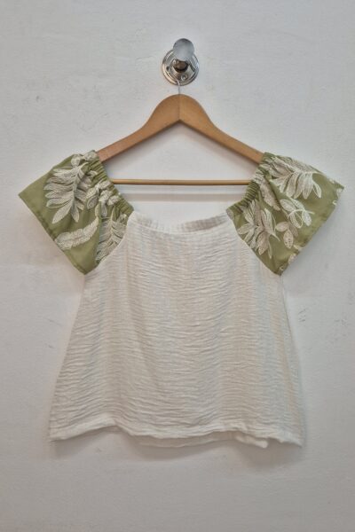 Blusa confeccionada en algodón rustico y la manga en viscosa bordado.