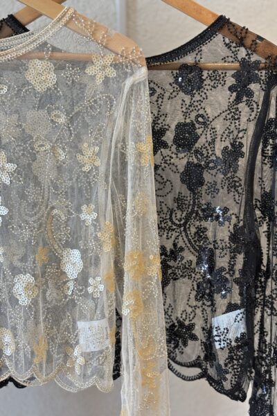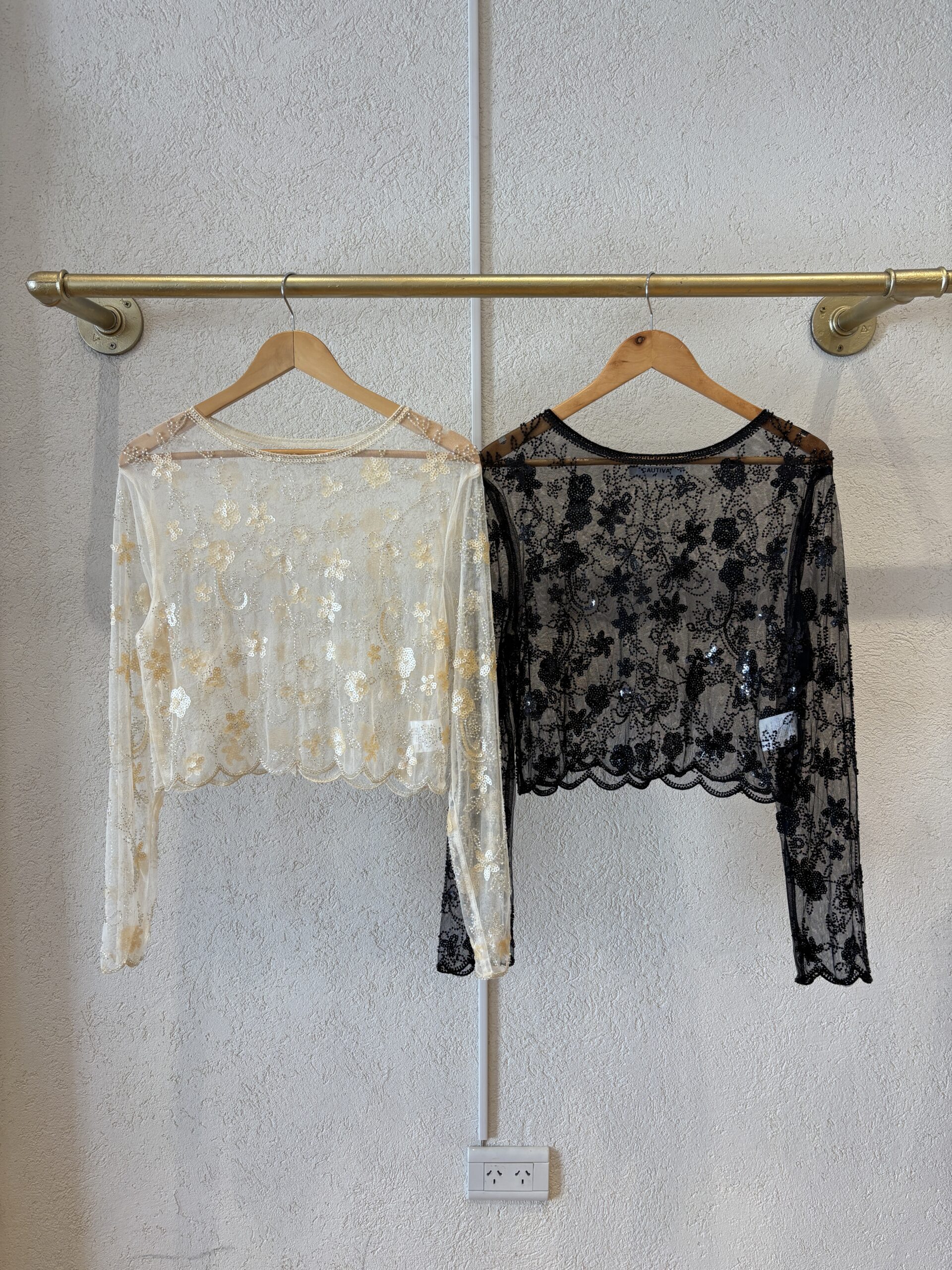 Blusa confeccionado en tul elastizado con bordados, canesu y lentejuelas.