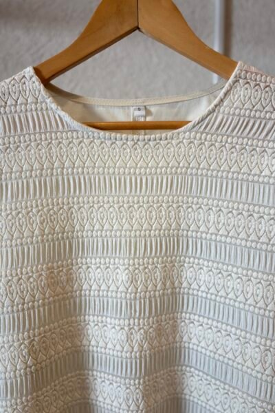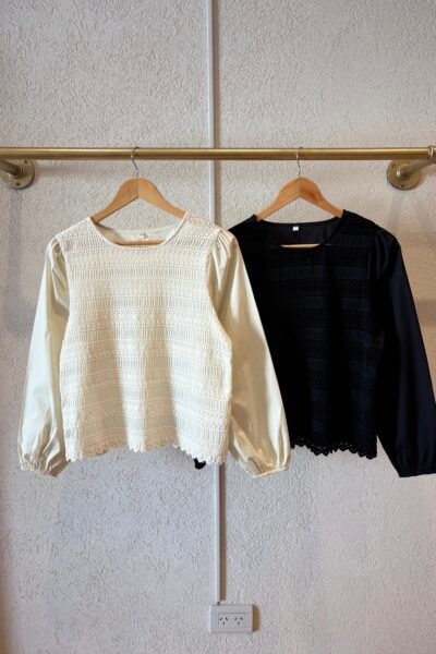 Blusa confeccionado en broderie con encaje combinado con poplin camisera.