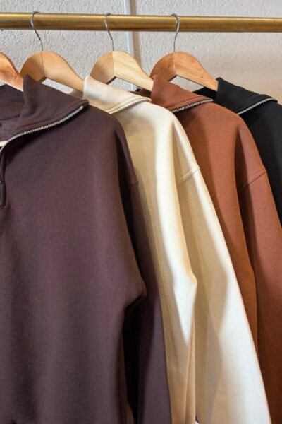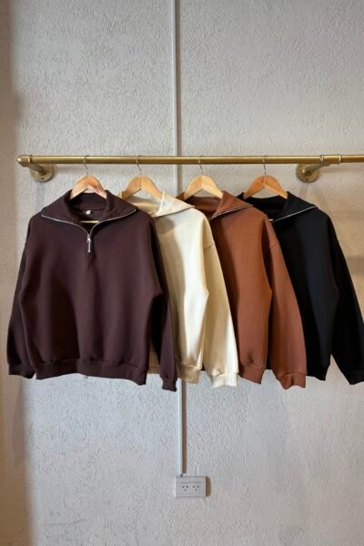 Buzo confeccionado en friza con cierre en el cuello.