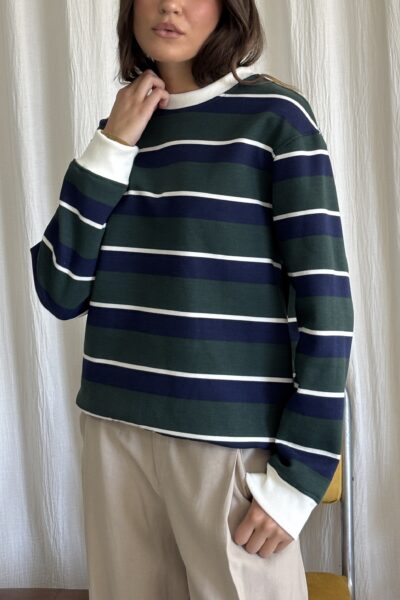 Buzo ancho confeccionado en friza rayado con puños.
