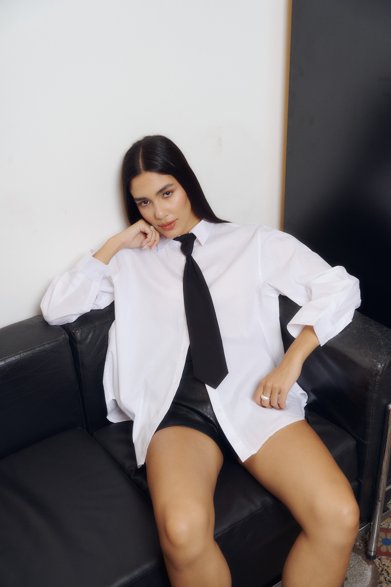 Camisa confeccionado en poplin camisera con lycra, estilo oversize. Se puede combinar con nuestra Corbata negra.