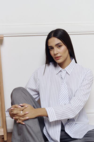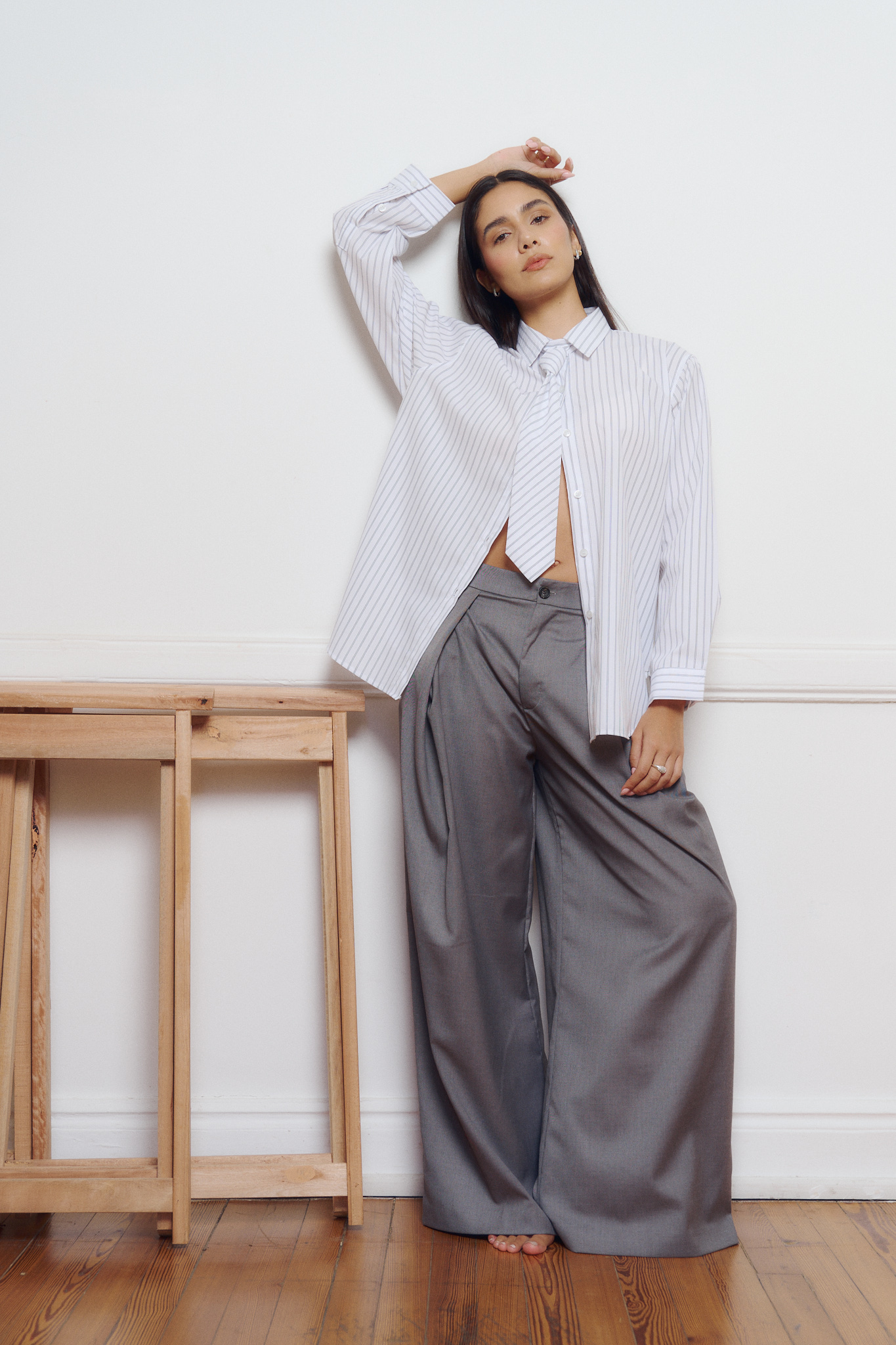 Camisa confeccionado en poplin rayado oversize con corbata.