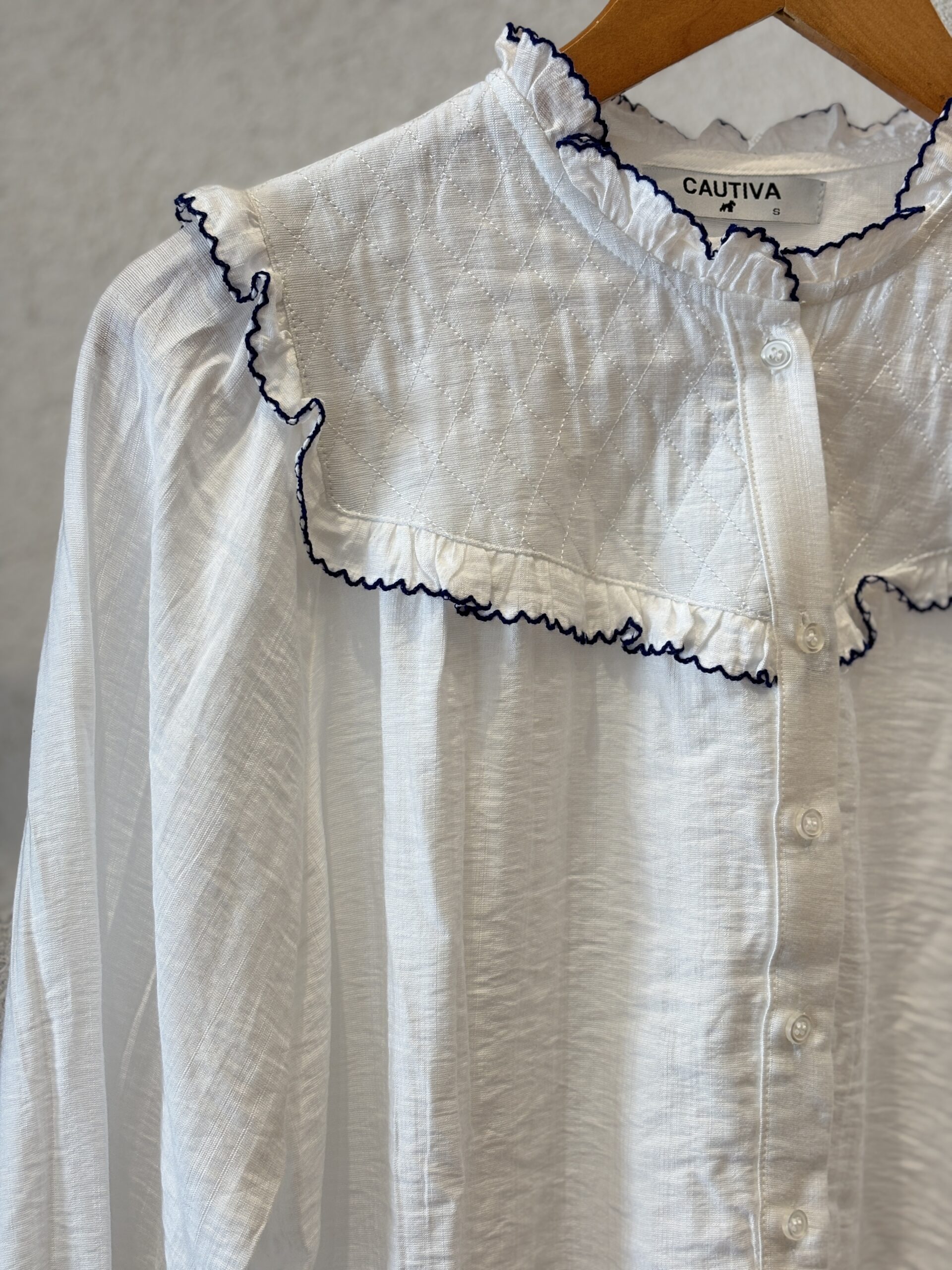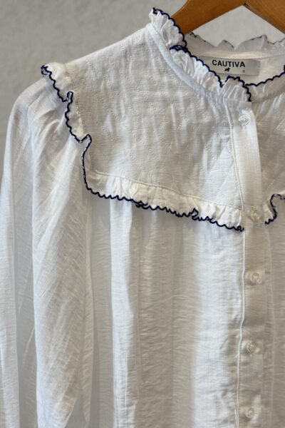 Camisa confeccionado en viscosa con volados en la parte delantero.