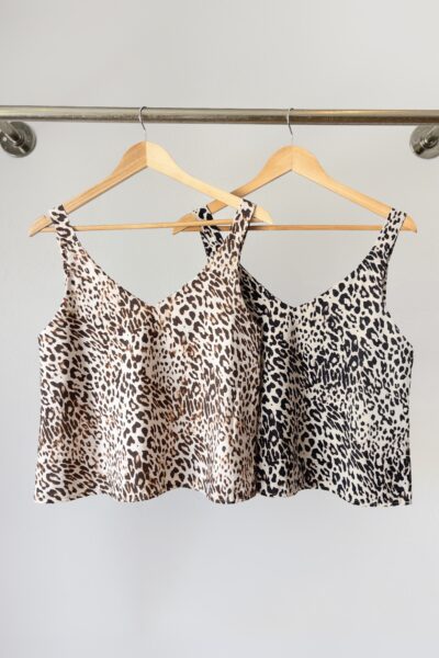 Musculosa confeccionada al bies, con estampa animal print y escote V. Hace conjunto con la pollera Candela.