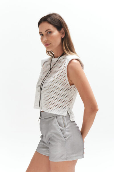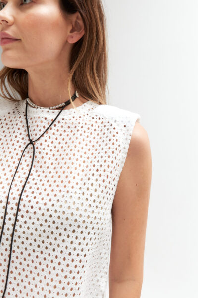 Musculosa de broderie con hombreras.