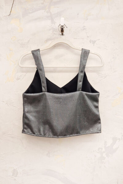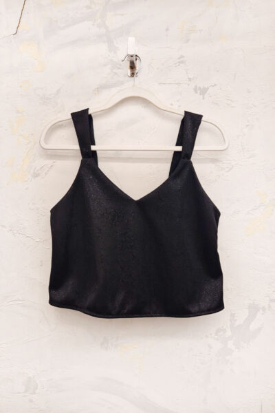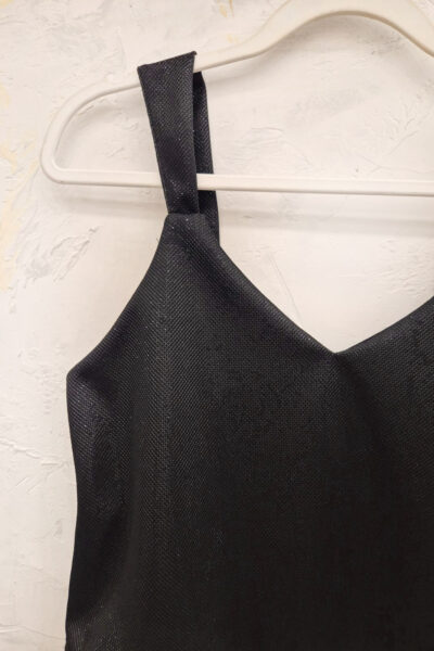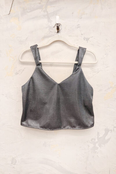 Musculosa confeccionada en crepe con brillo. Bretel ancho.