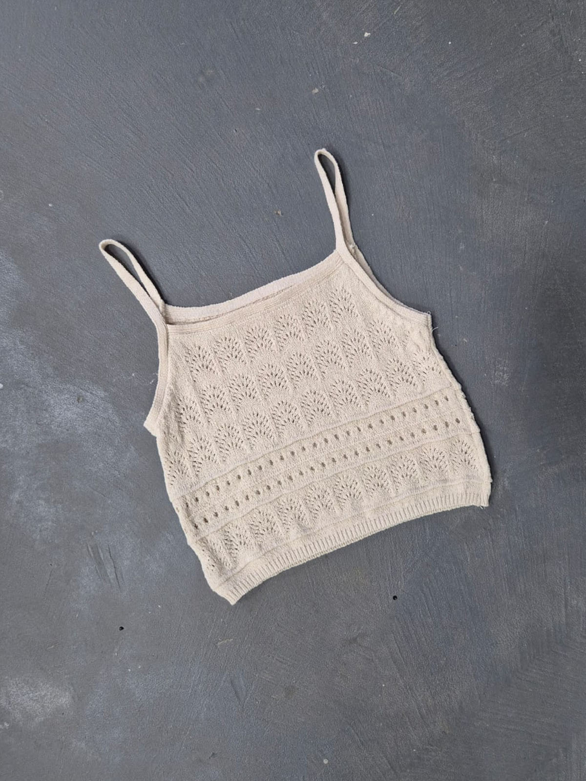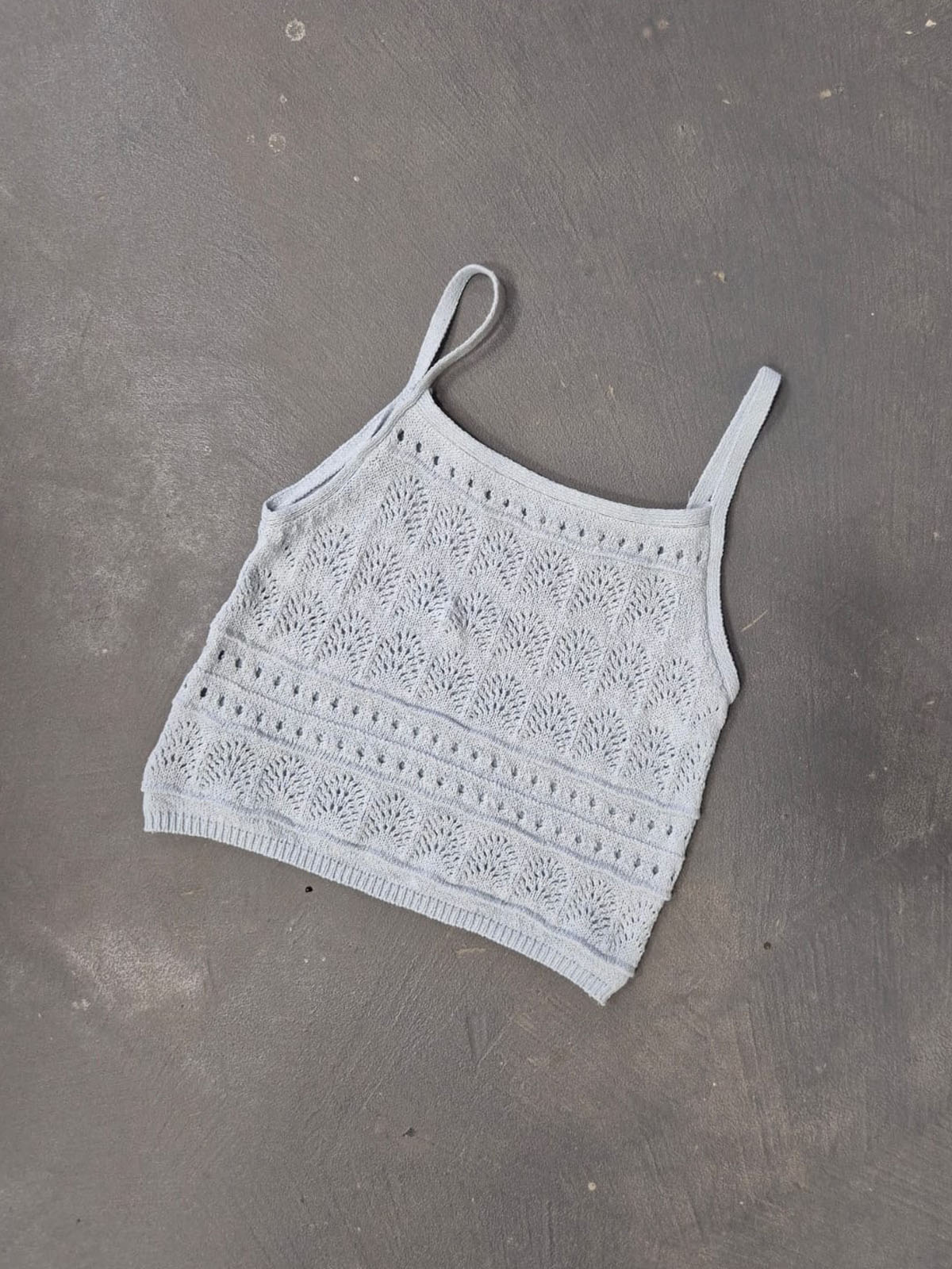 Musculosa tejida calada con bretel fino.