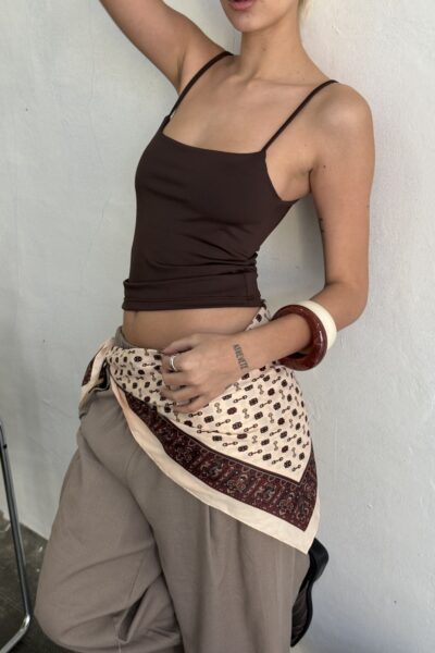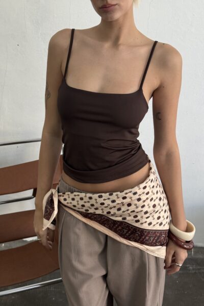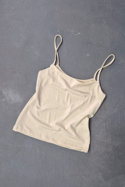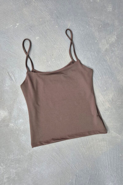Musculosa confeccionada en microfibra. Diseño de calce al cuerpo con breteles finos.