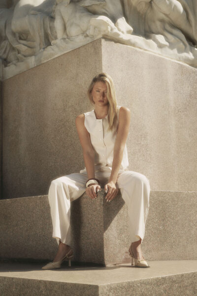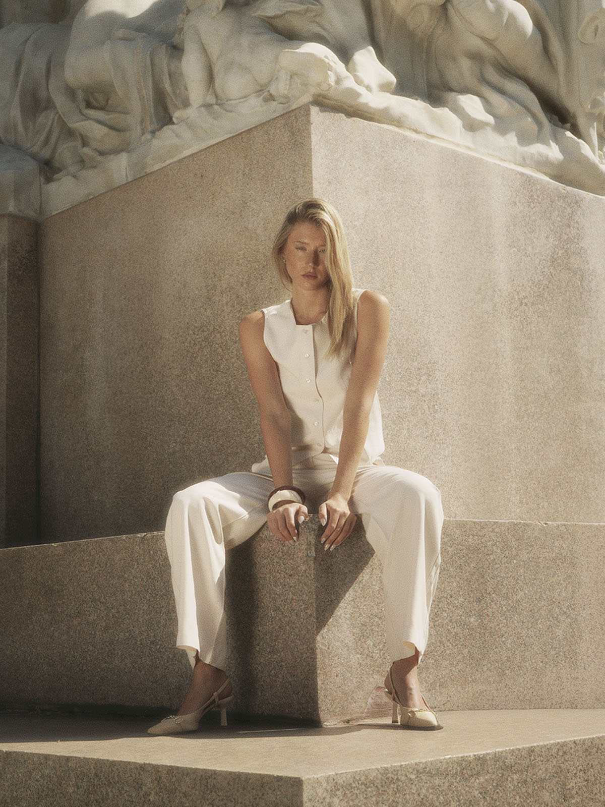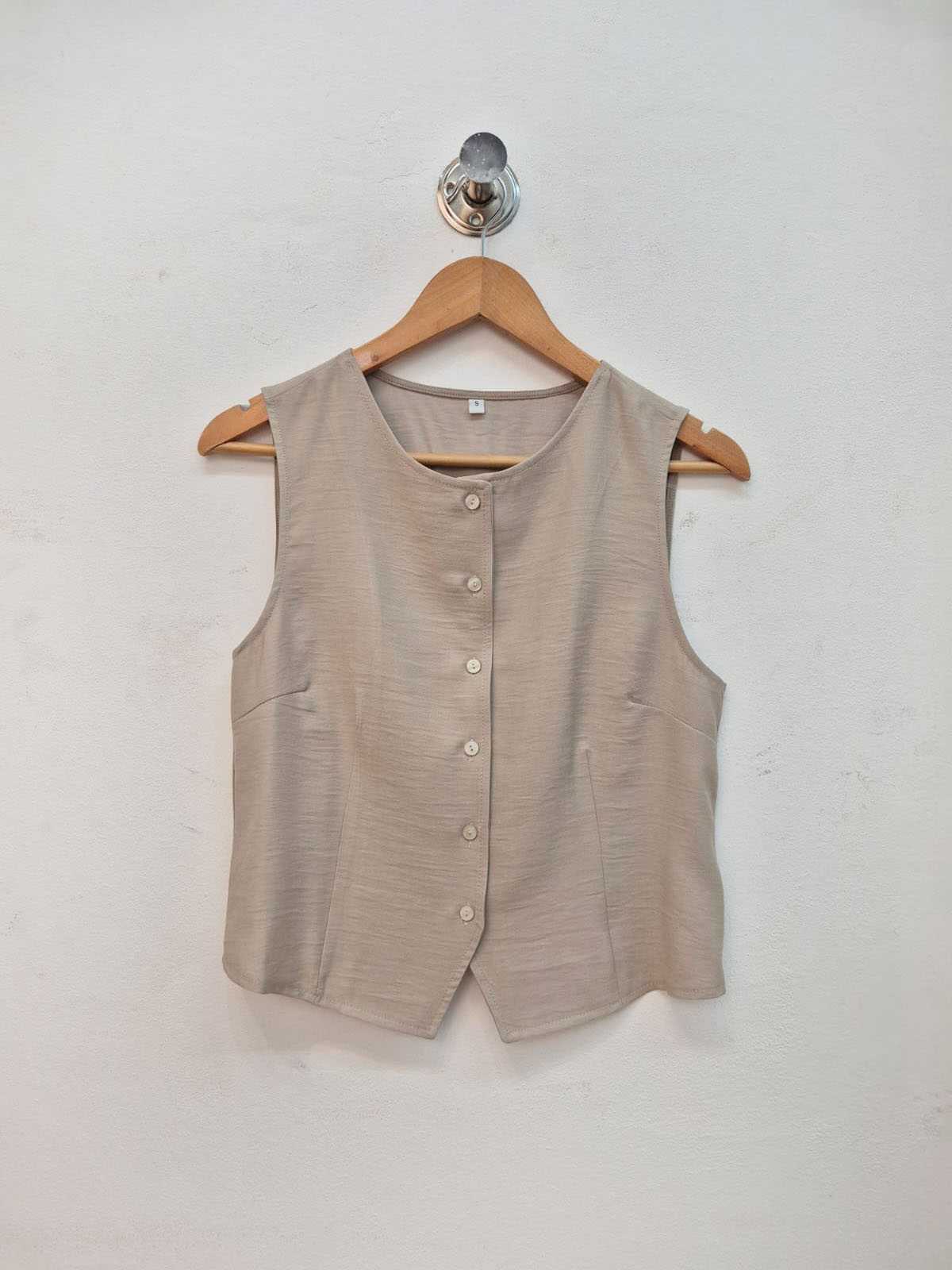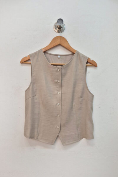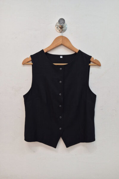 Musculosa confeccionada en tencel, abierta en el delantero con botones.