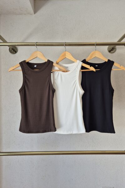 Musculosa confeccionado en morley con viscosa con cuello redondo.