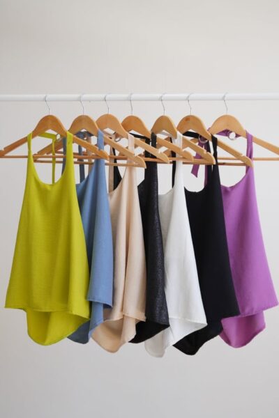 Musculosa confeccionada en sey lino con lurex. Presenta corte halter y fit relajado, con argolla regulable en el cuello. Espalda descubierta.