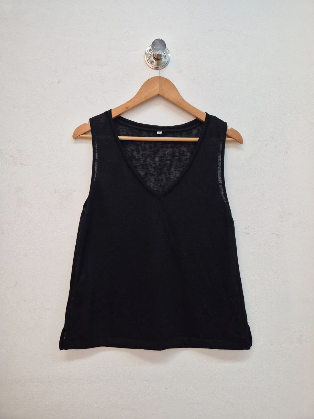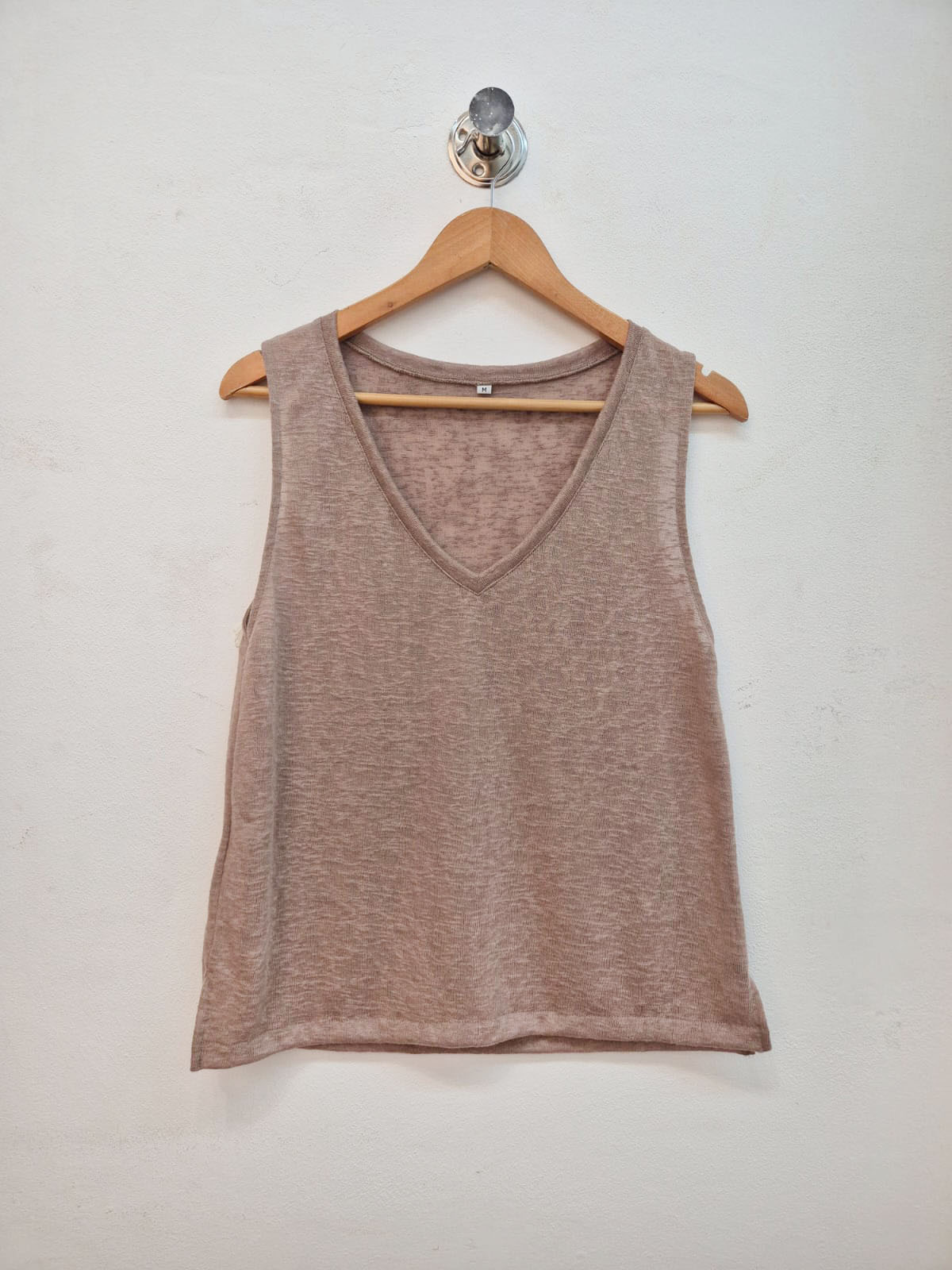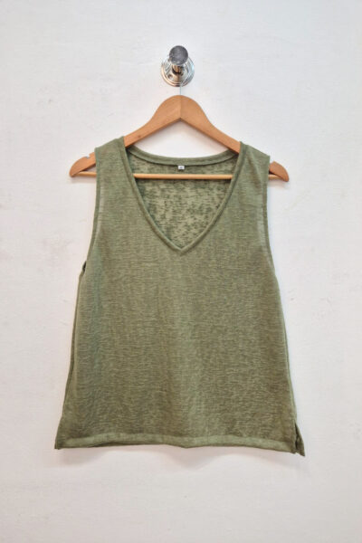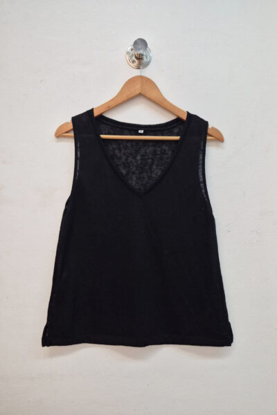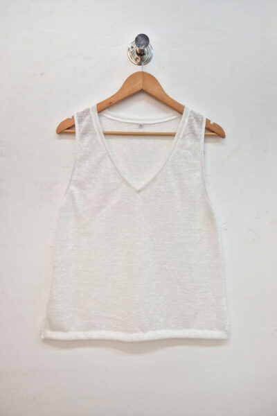 Musculosa confeccionada en punto lino, con escote en “V”.