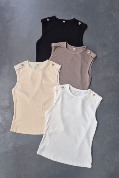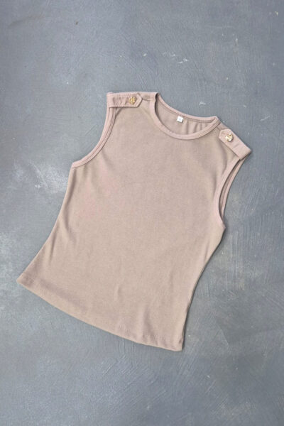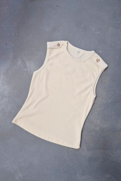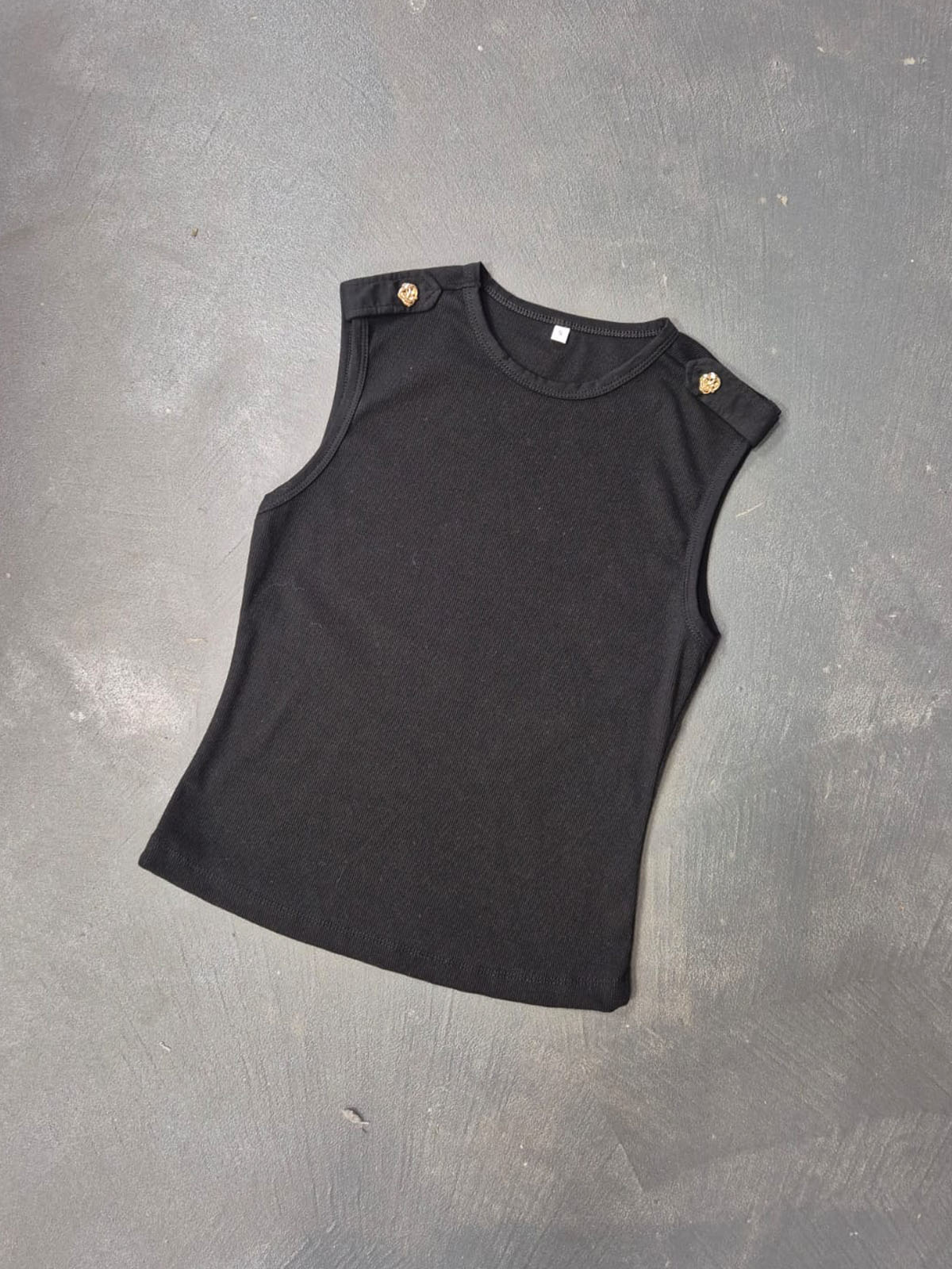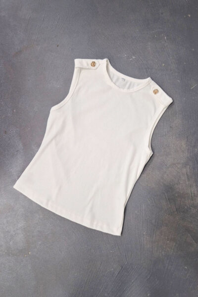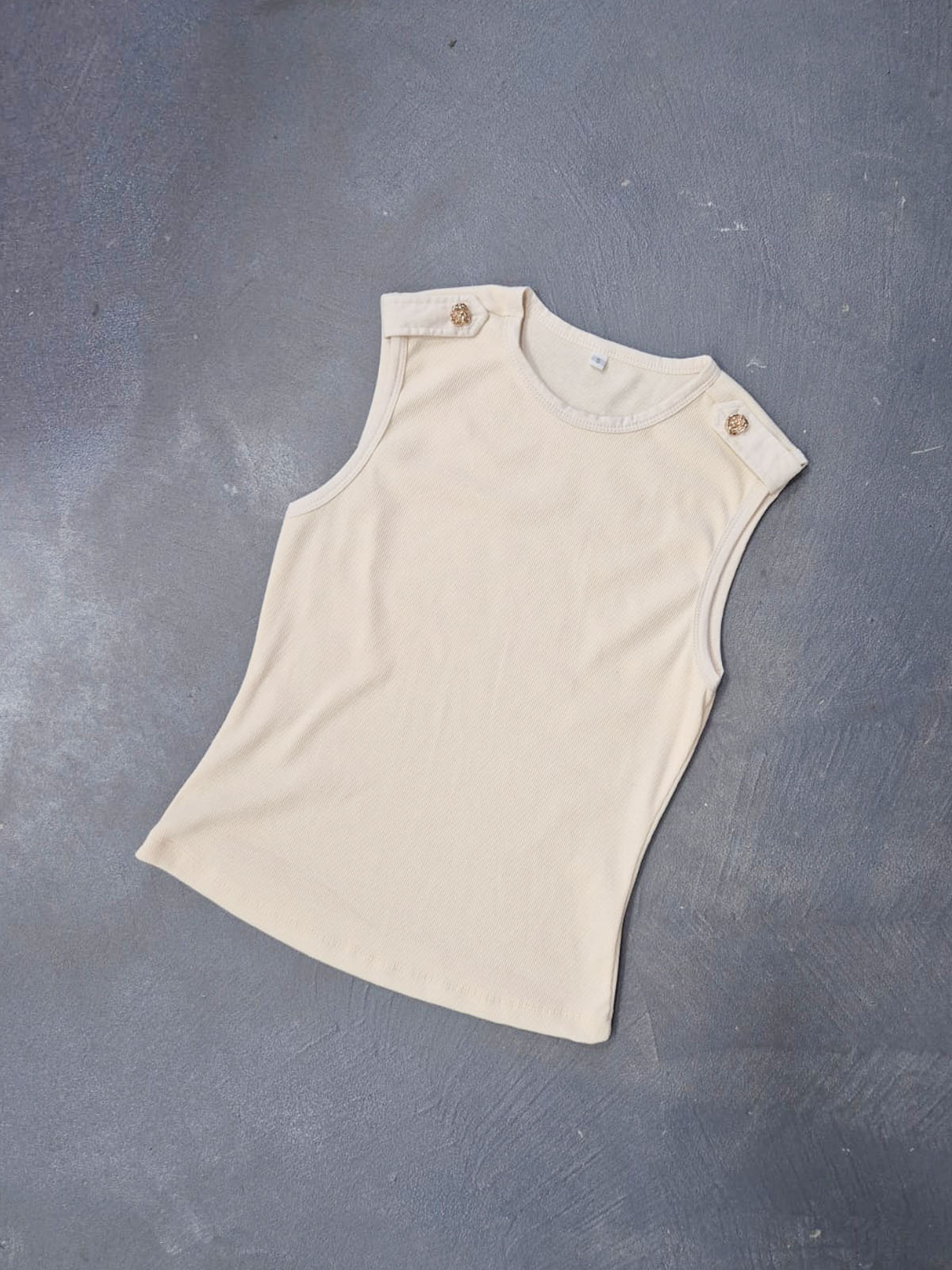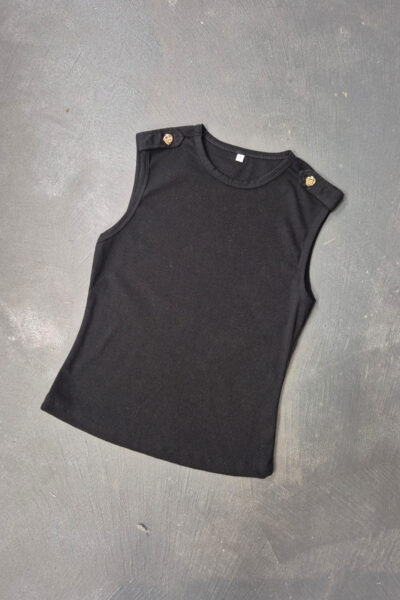 Musculosa confeccionada en morley, con botones dorados en los hombros.
