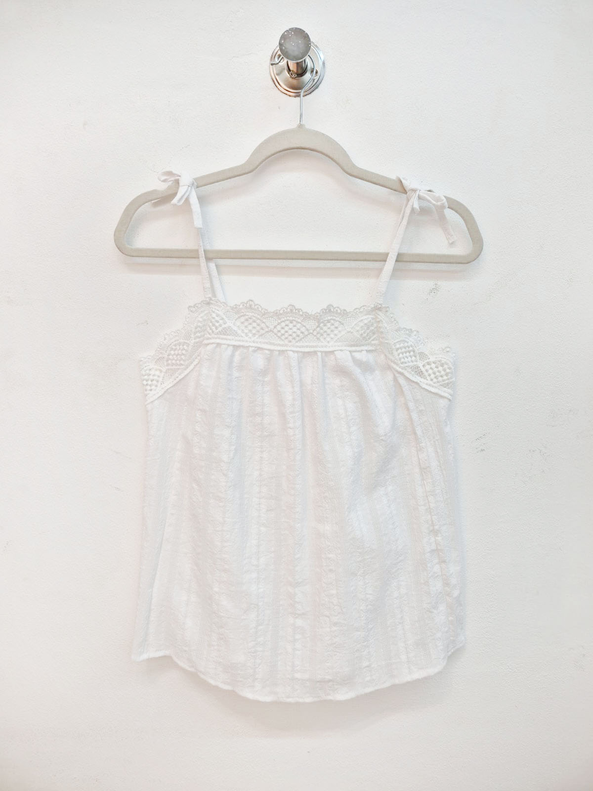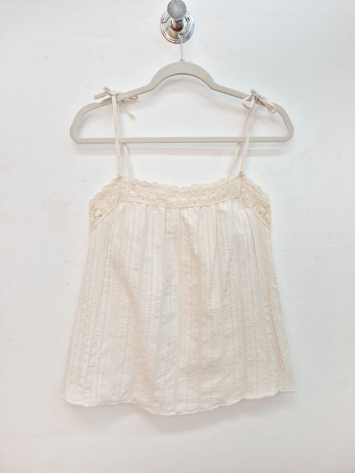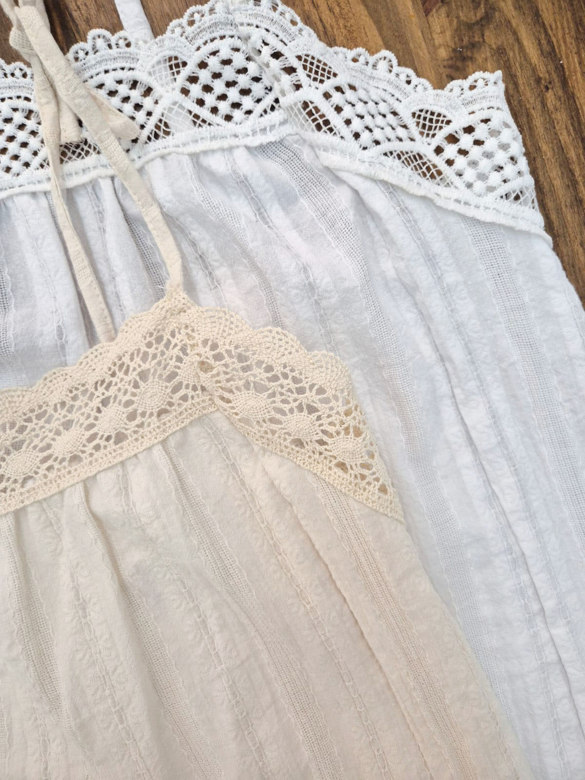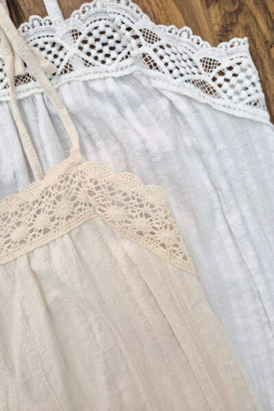 Musculosa de ratier algodón con breteles y puntillas, con elástico en la espalda para mejor calce.