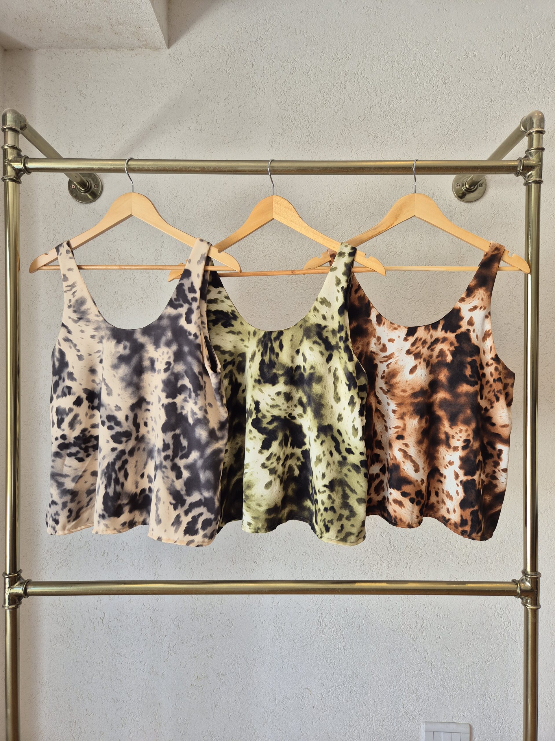 Musculosa confeccionado en seda print con cuello redondo. Hace conjunto con el pantalon Linda.