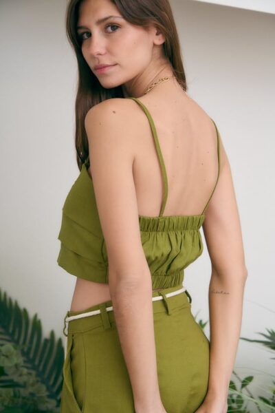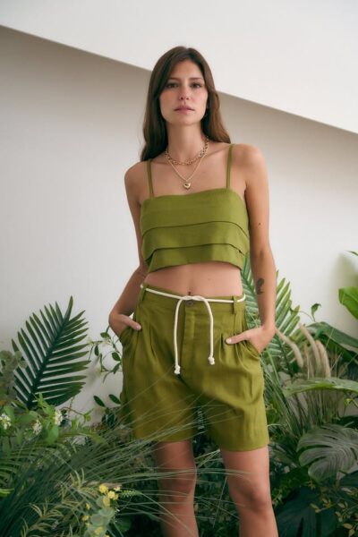 Top de lino sastrero. Con tabla y breteles finos.