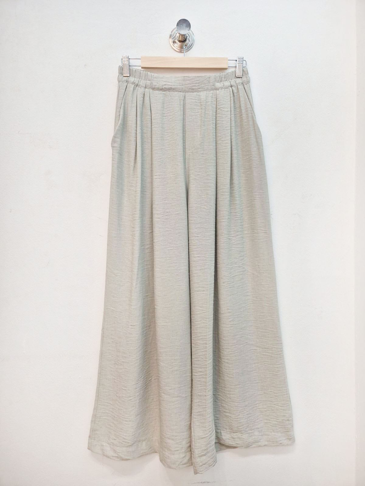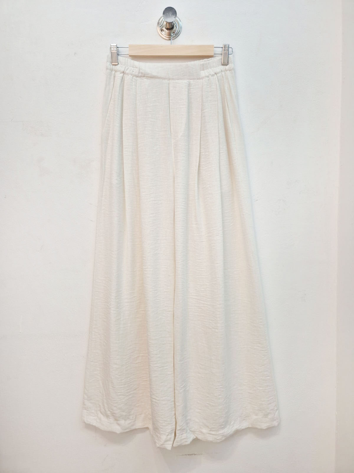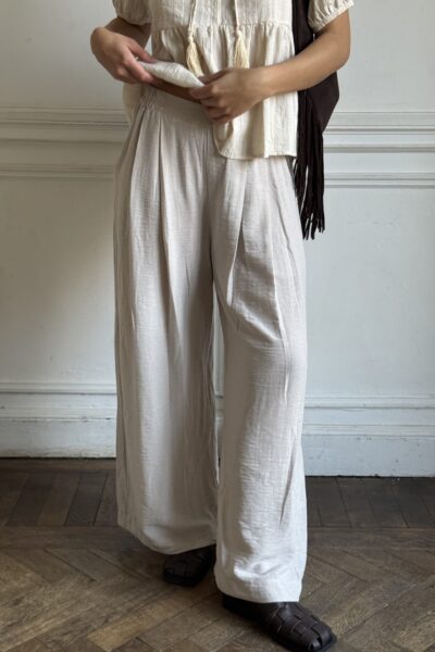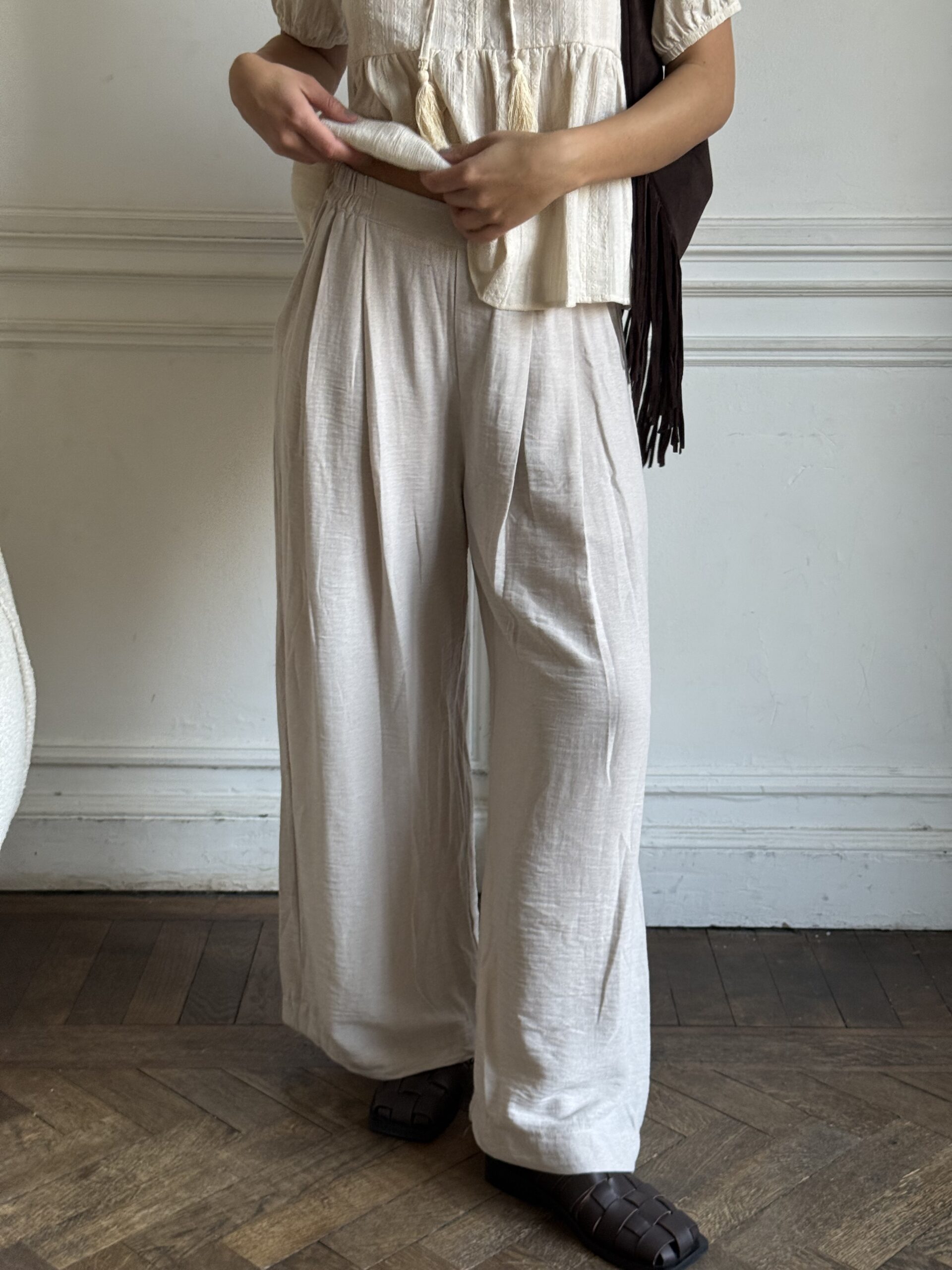 Palazzo confeccionado en lino rústico, de corte ancho con pinzas y elástico en la cintura.
