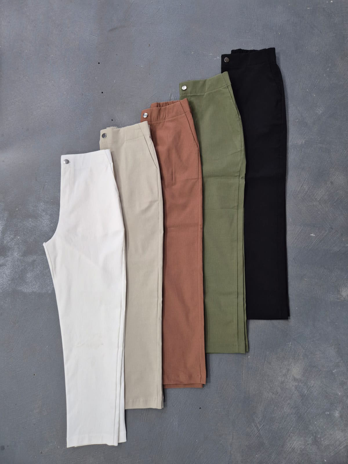 Pantalón confeccionado en bengalina, con elástico en la cintura.