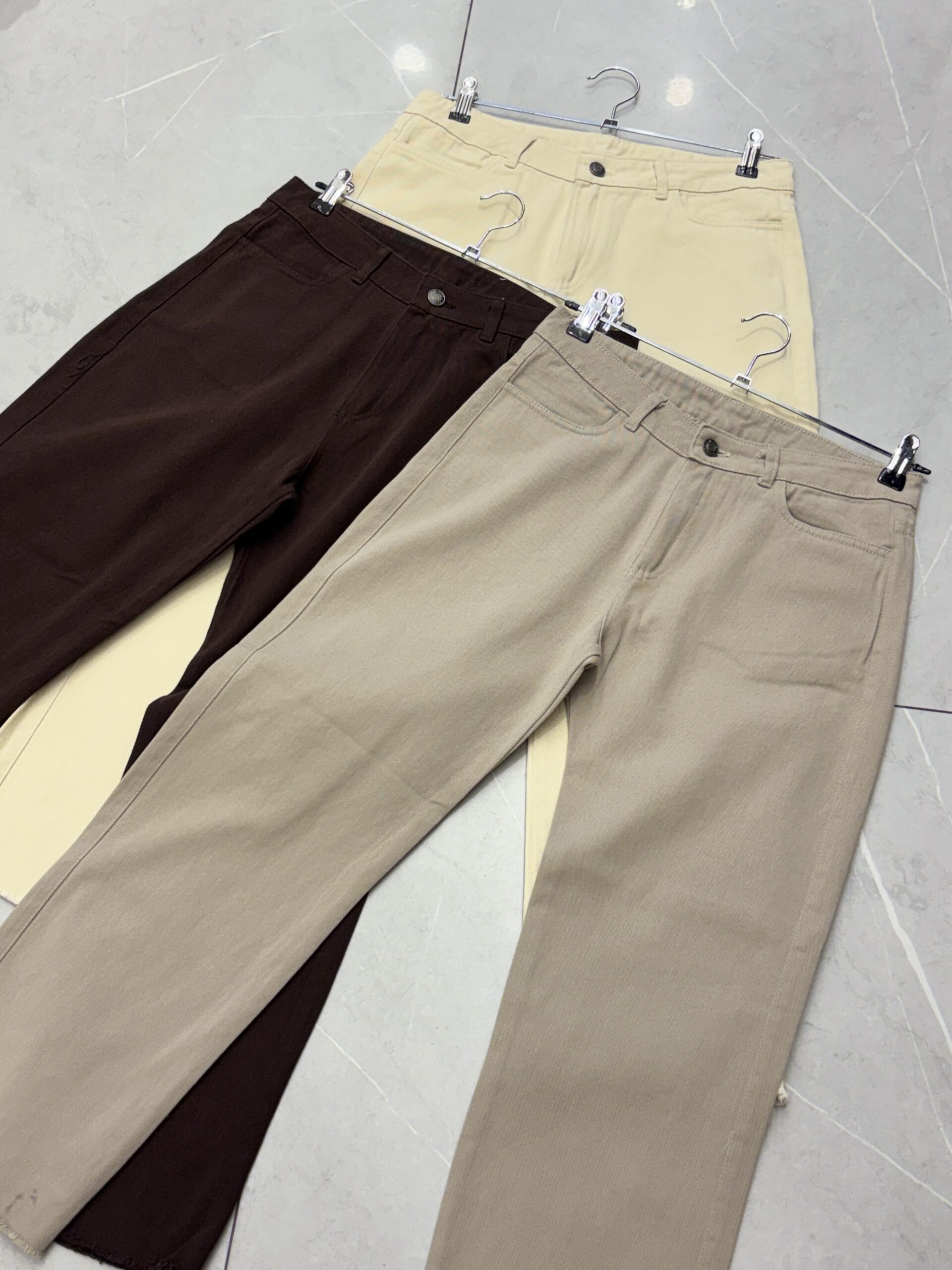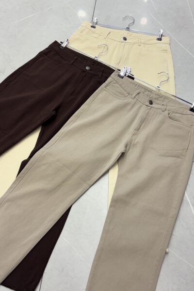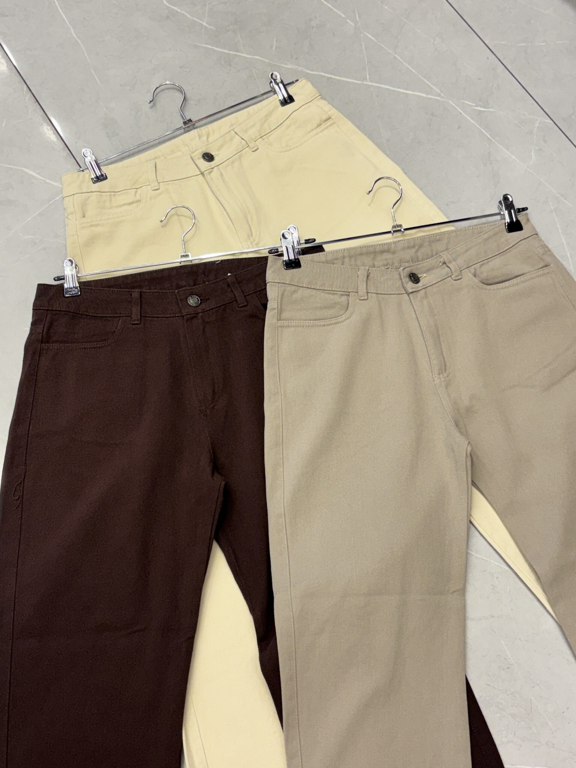Pantalón confeccionado en gabardina, de tiro medio y corte recto.