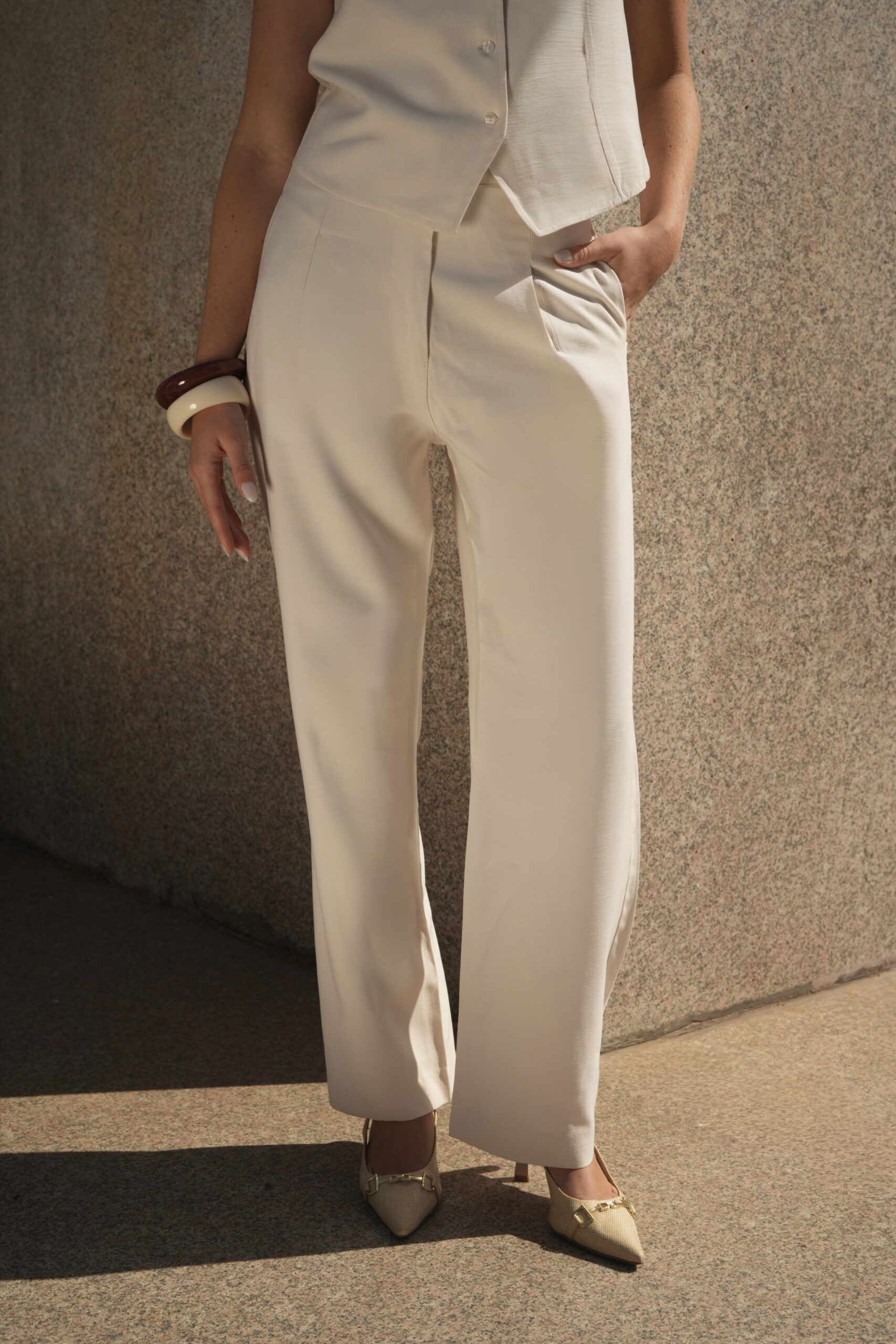 Pantalón confeccionado en tencel, de corte sastrero con pinzas.