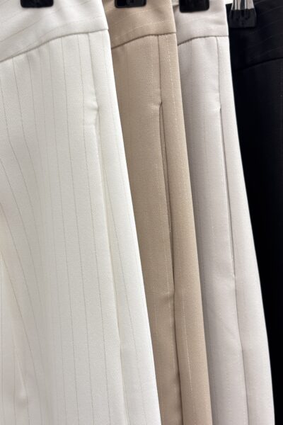 Pantalon tiro alto confeccionado en sastre con lurex con pinzas en la parte delantera. Hace conjunto con el Chaleco Joaquina.