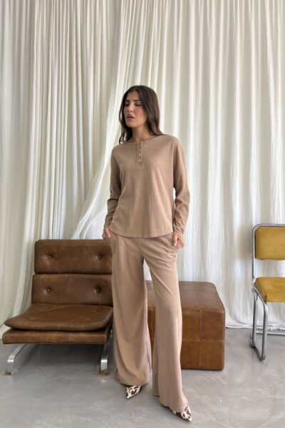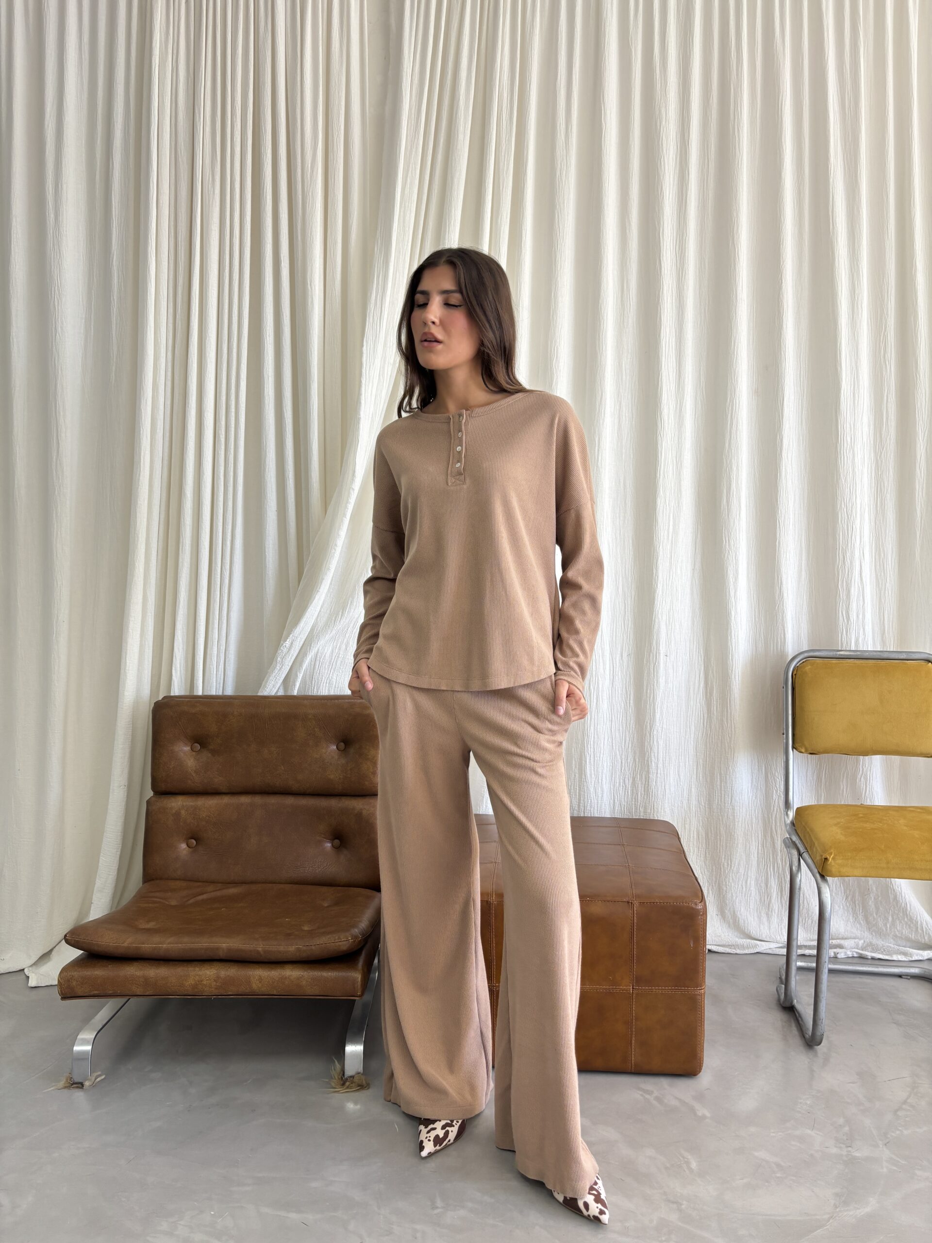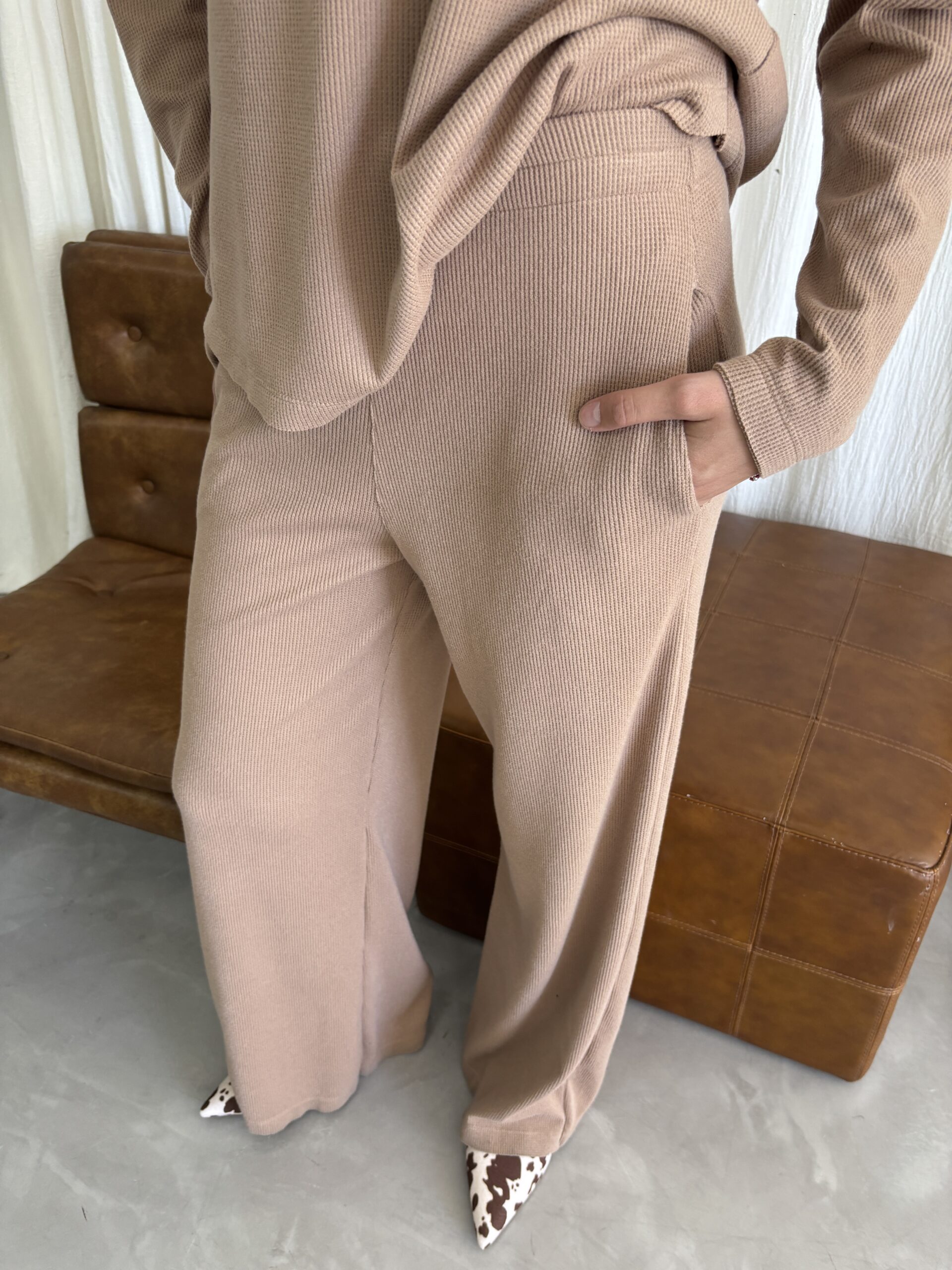 Pantalon confeccionado en waffle con elastico en la cintura y bolsillos.
