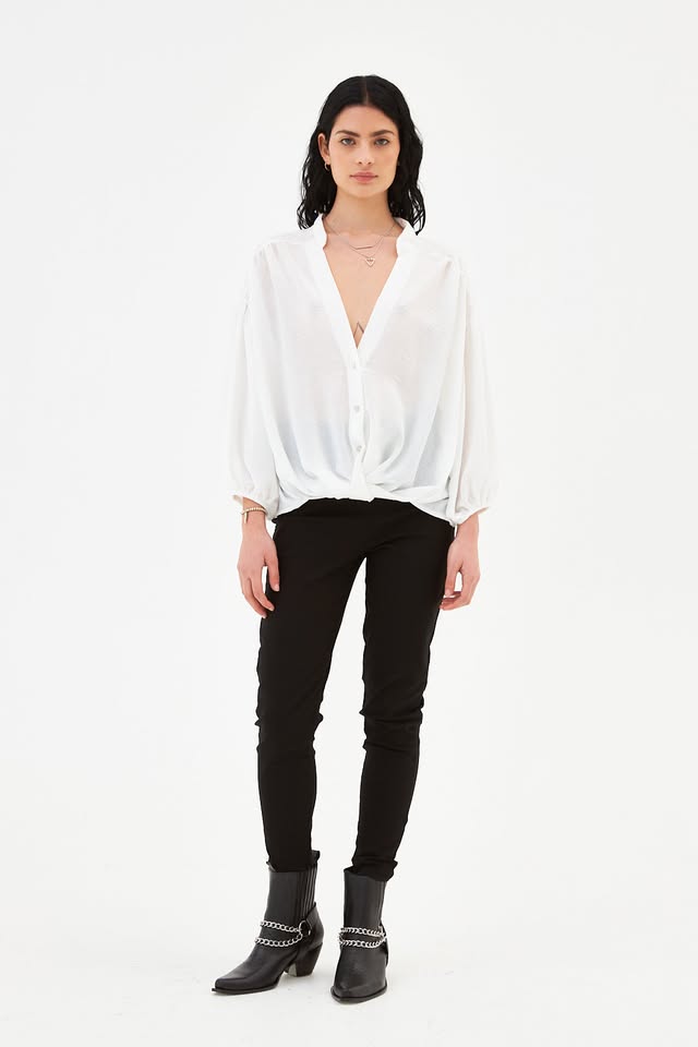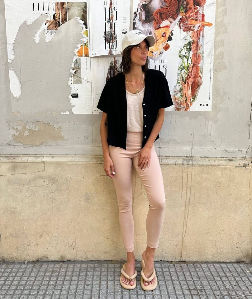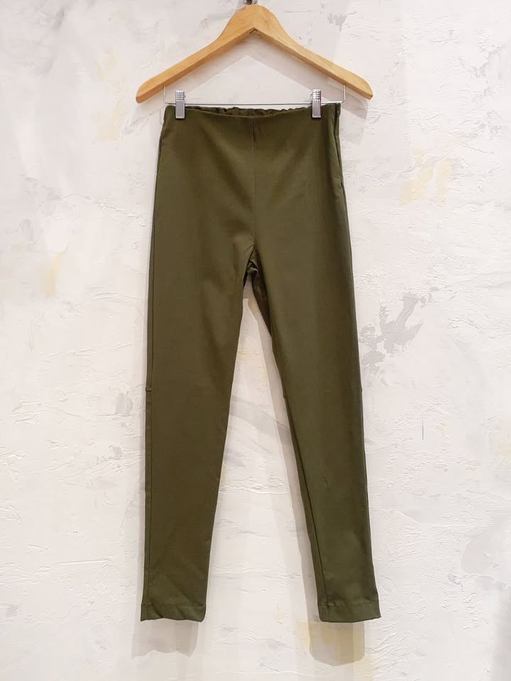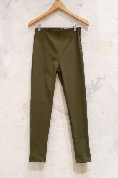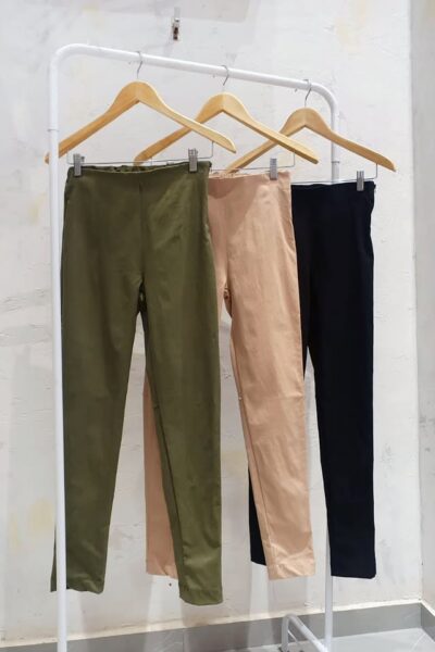 Pantalón de bengalina elastizado tipo leggins. Con cierre al costado. Cintura con elástico embolsado.