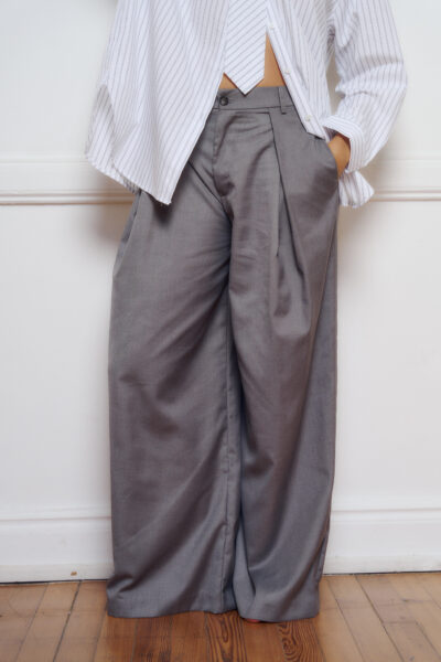 Pantalon confeccionado en sastre con pinzas cruzadas y bolsillos en ambos lados.