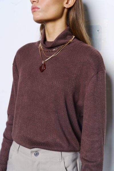 Polera confeccionado en morley lanilla viscosa con trama calado y cuello holgado.