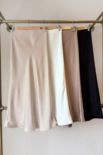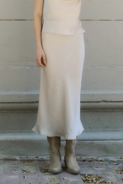 Pollera confeccionado en seda lisa con efecto marmolado. Hace conjunto con la musculosa Guillermina.
