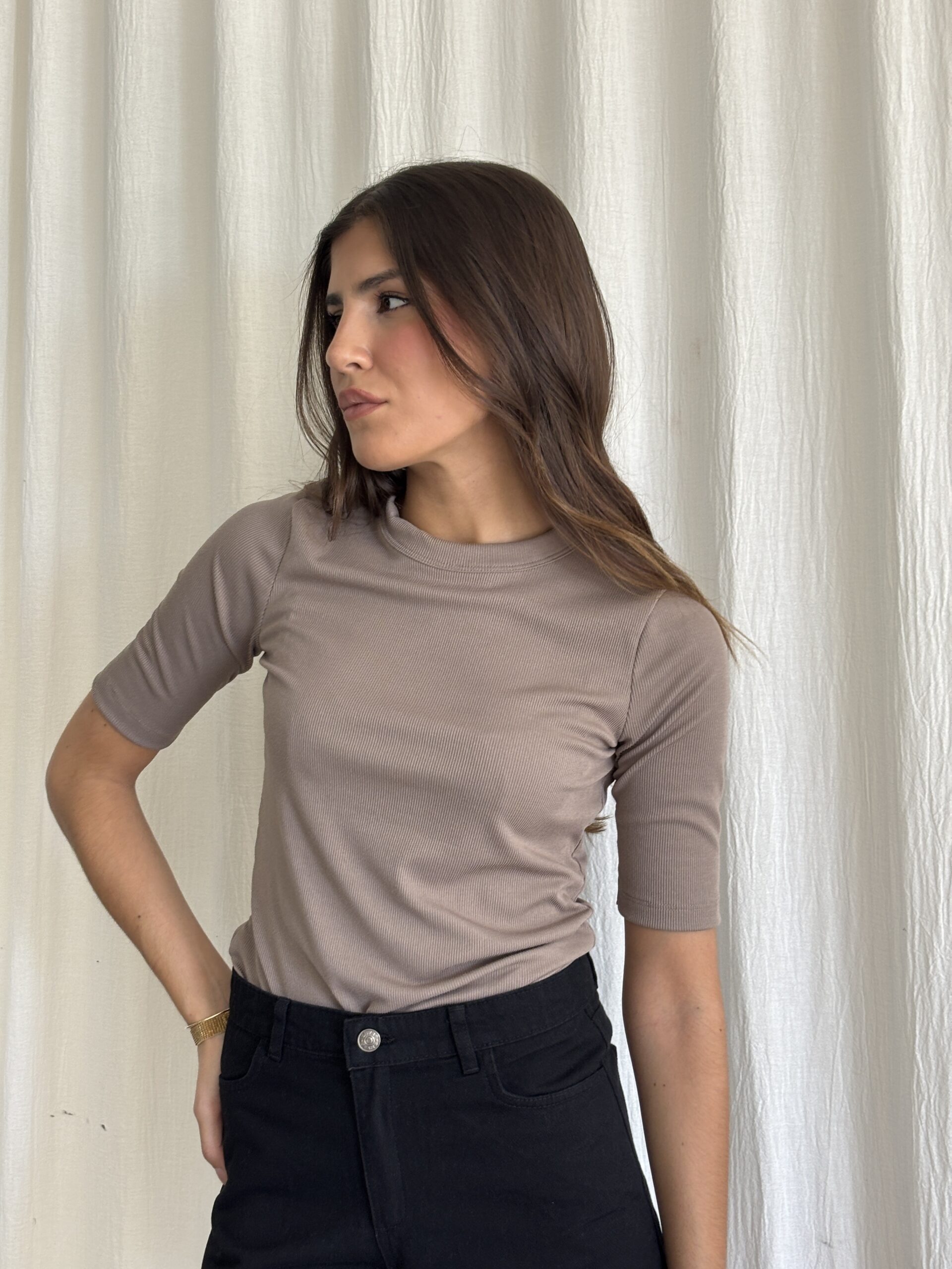 Remera confeccionado en ribb algodon viscosa con manga francesa.