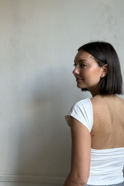 Remera confeccionada en microfibra, con espalda descubierta.