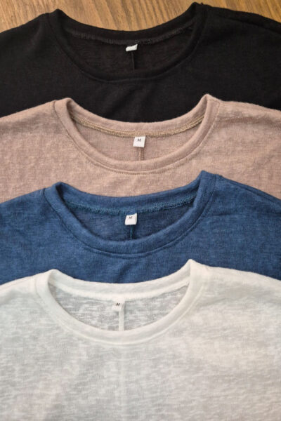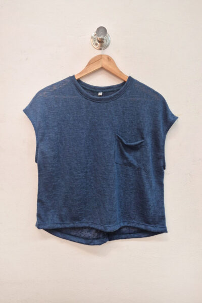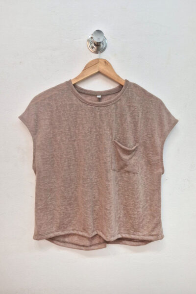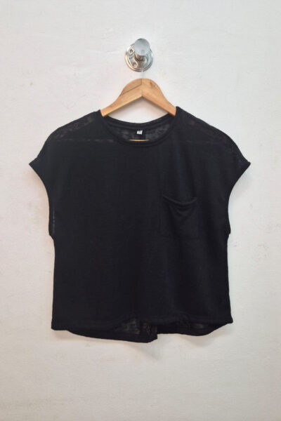 Remera confeccionada en lino de punto, con bolsillo aplicado y manga caída.