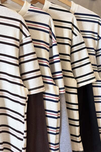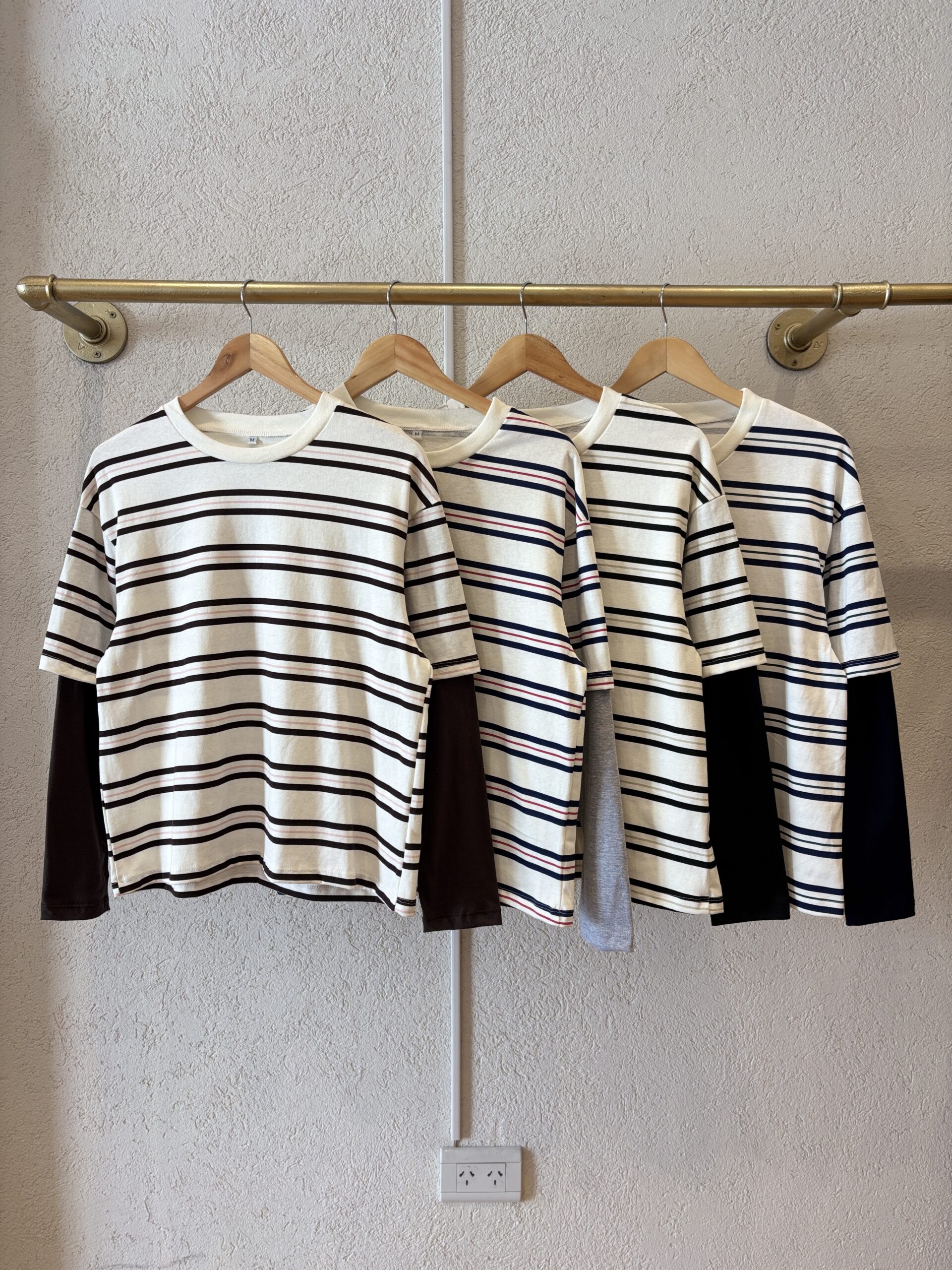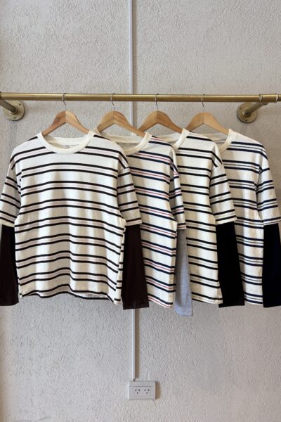 Remera confeccionado en algodón jersey rayado con mangas lisas.