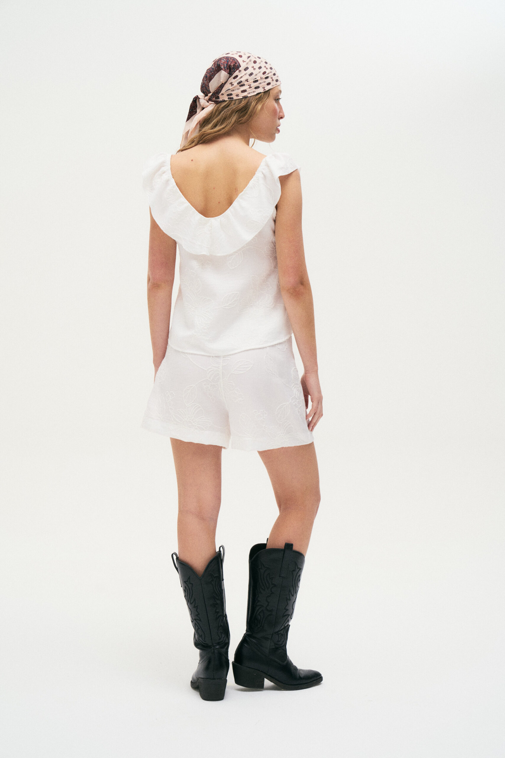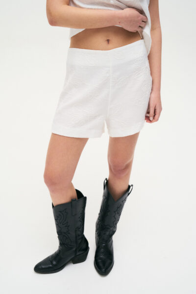 Short confeccionado en twill bordado con cierre invisible en el lateral.