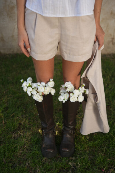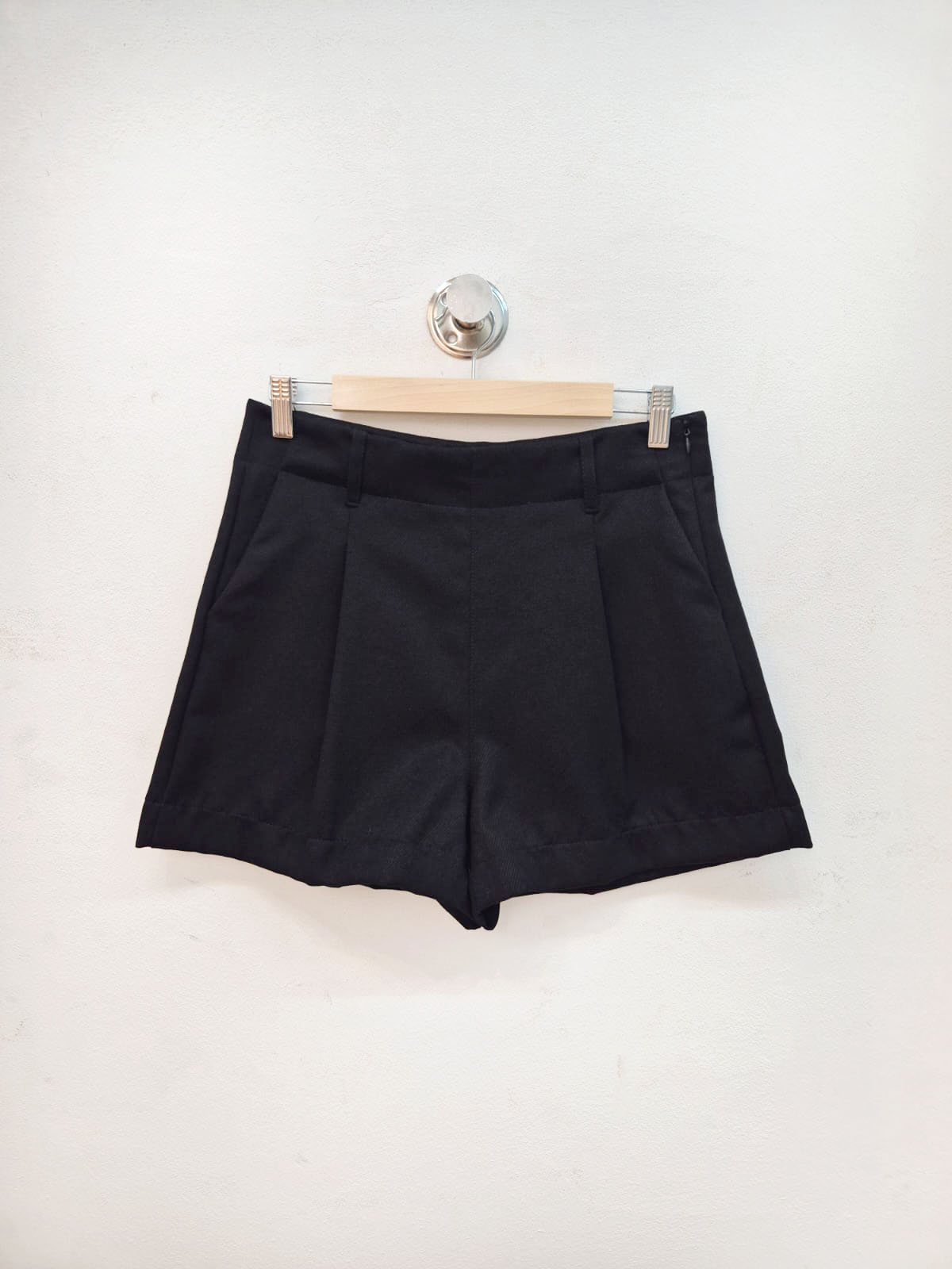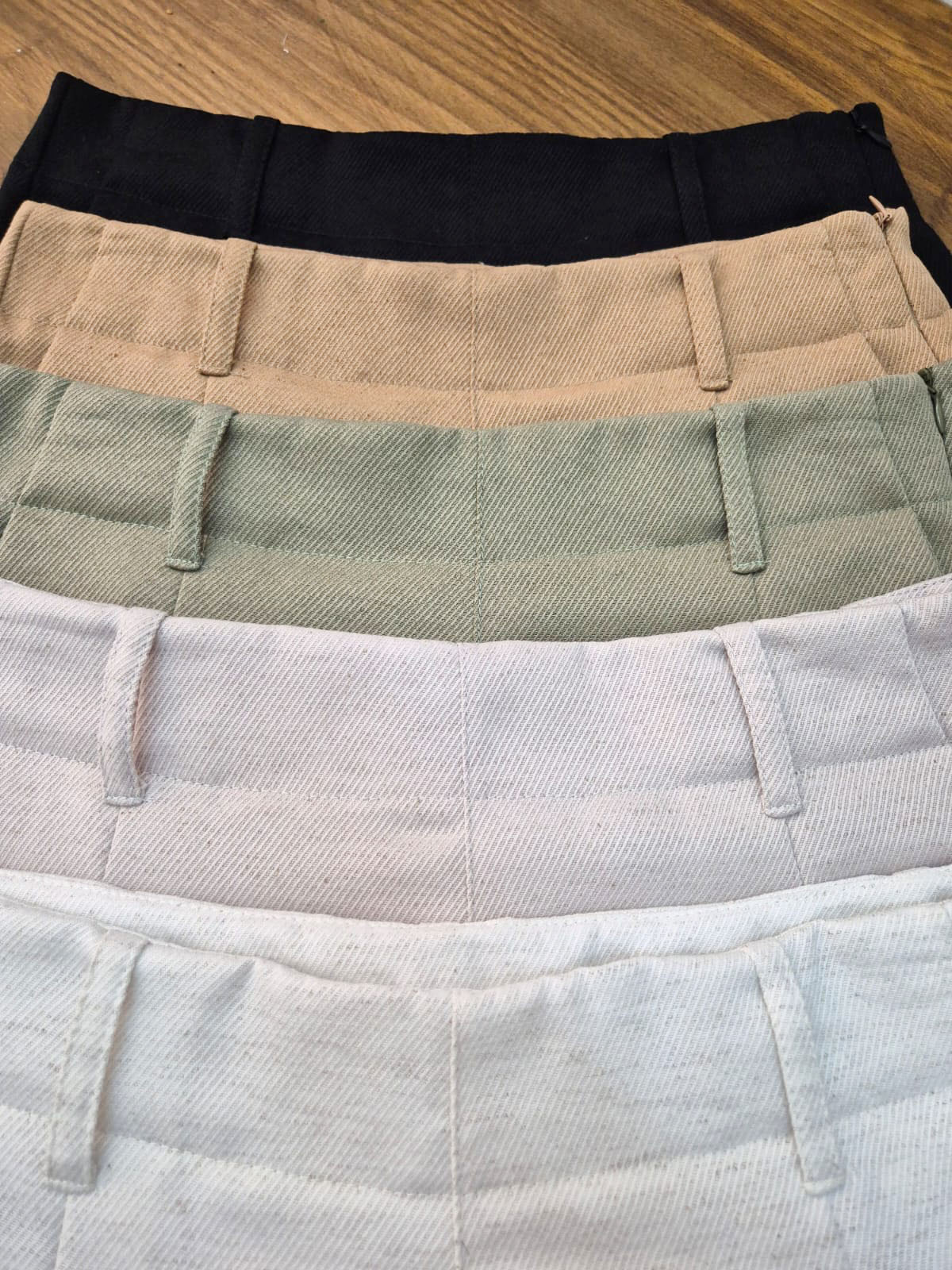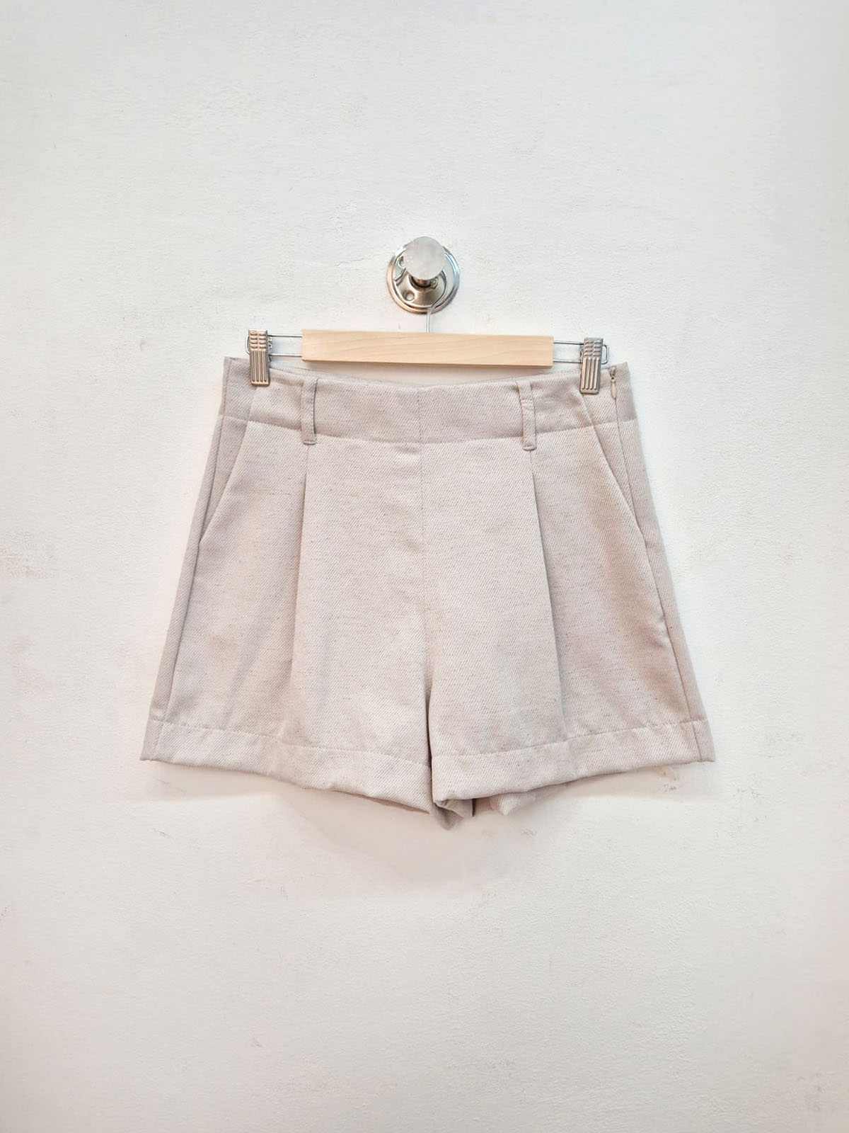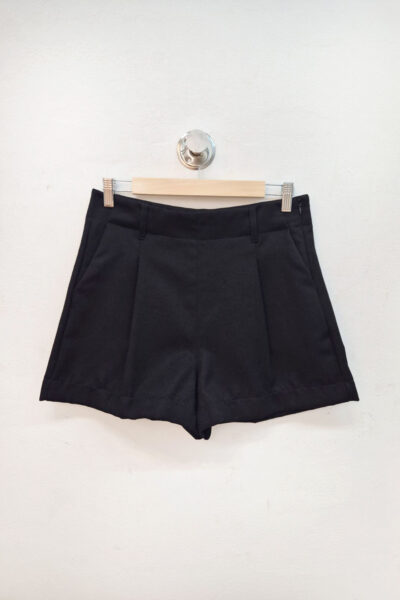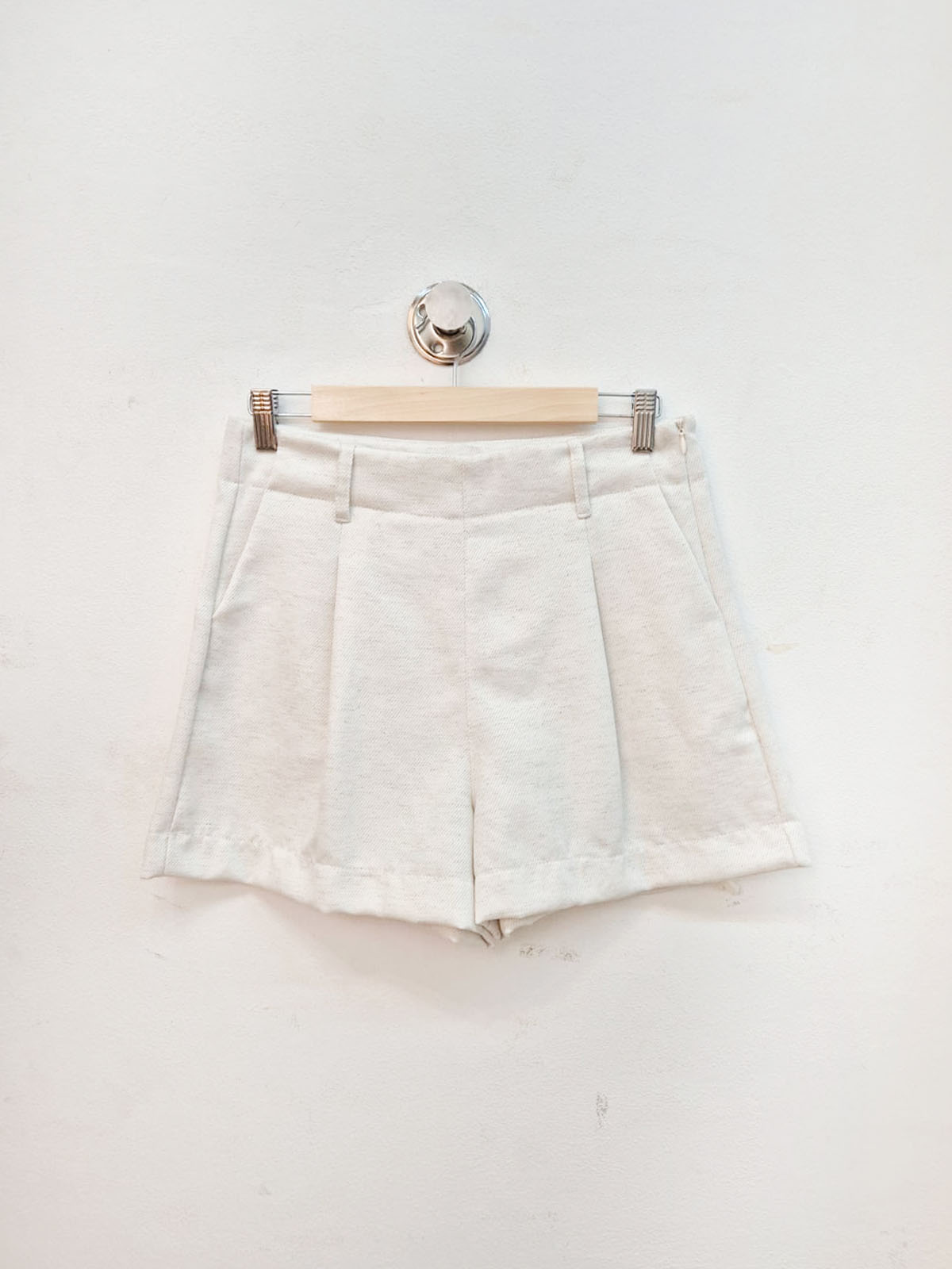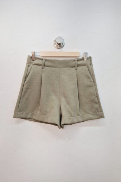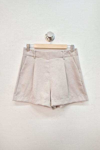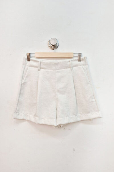 Short confeccionado en lino sastrero sarga, con pinzas y cierre lateral.