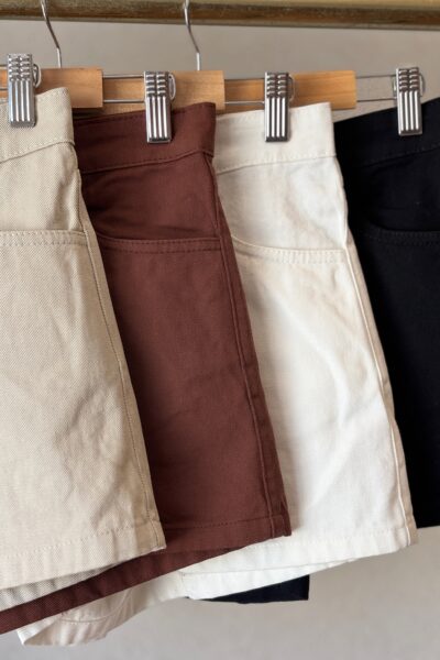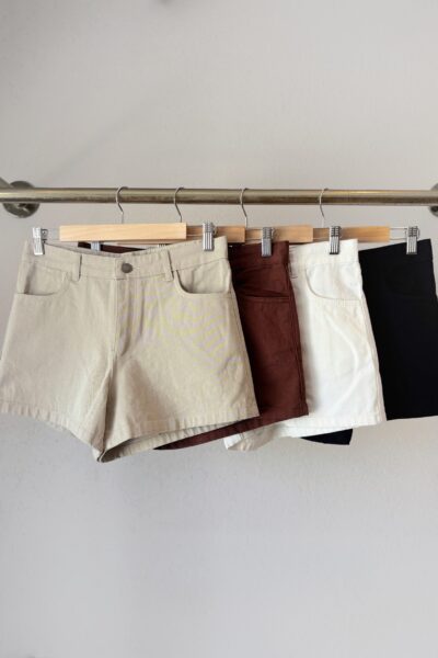Short confeccionada en gabardina, con bolsillos y cierre delantero.