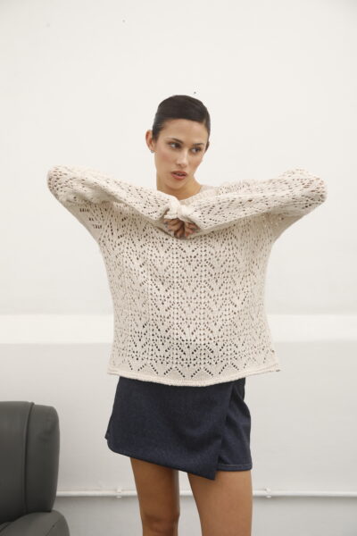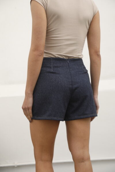 Short-pollera confeccionado en punto denim con spandex, con cierre delantero.