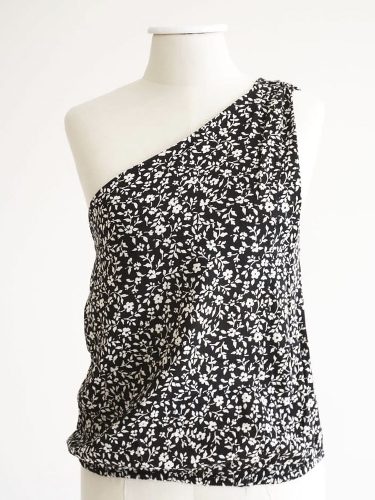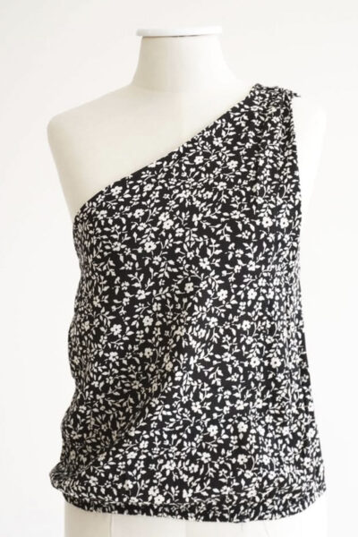 Top confeccionado en lino elastizado, de un solo hombro. Presenta elástico en la cintura para un mejor ajuste.