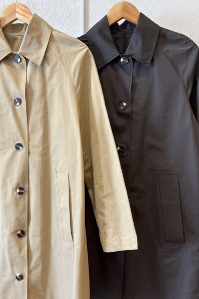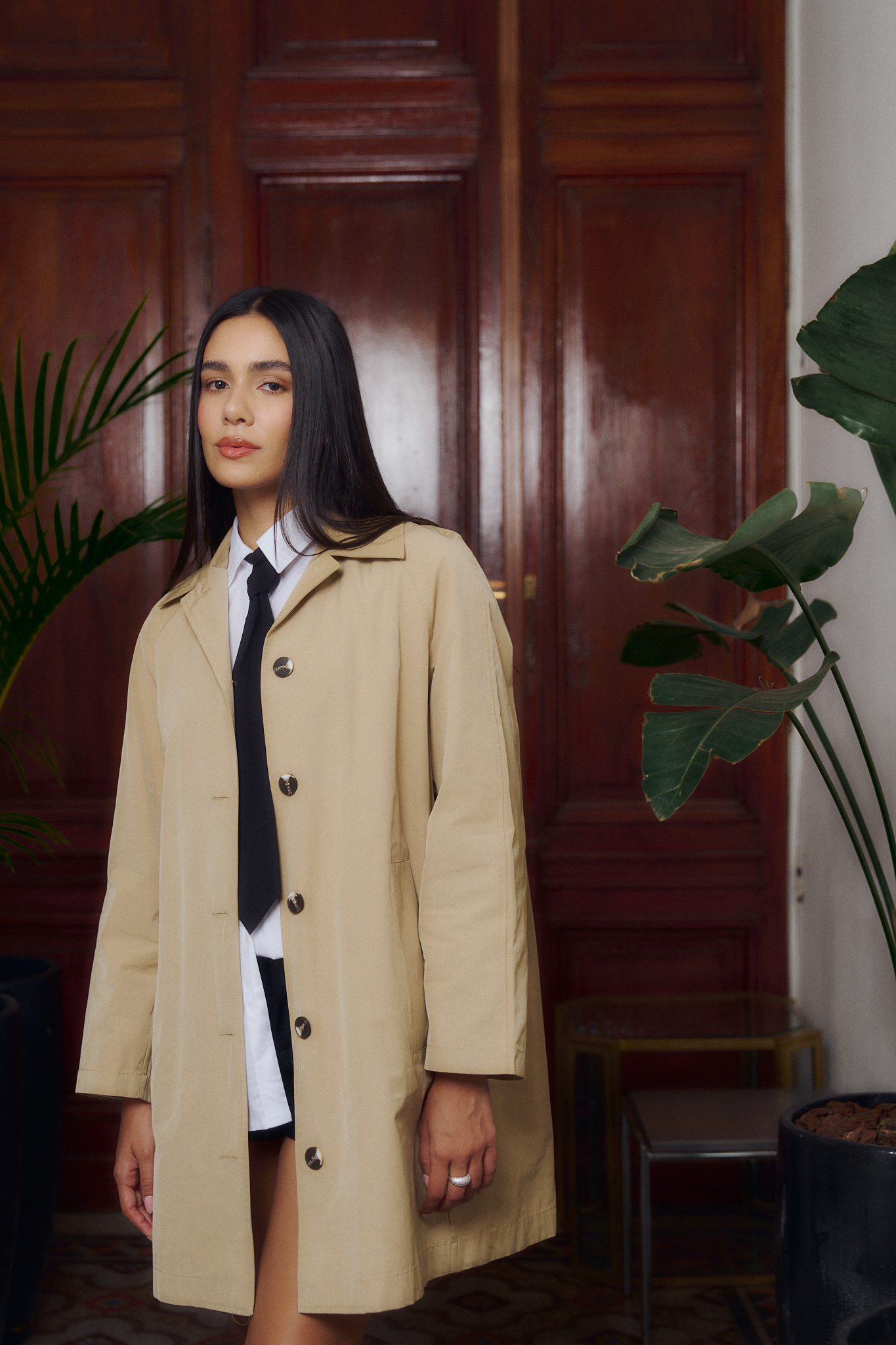 Abrigo ligero confeccionado en trench waterproof con cuello ranglan.