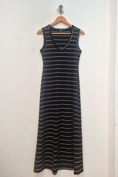 Vestido largo confeccionado en red viscosa, con escote en “V”.