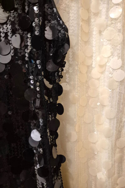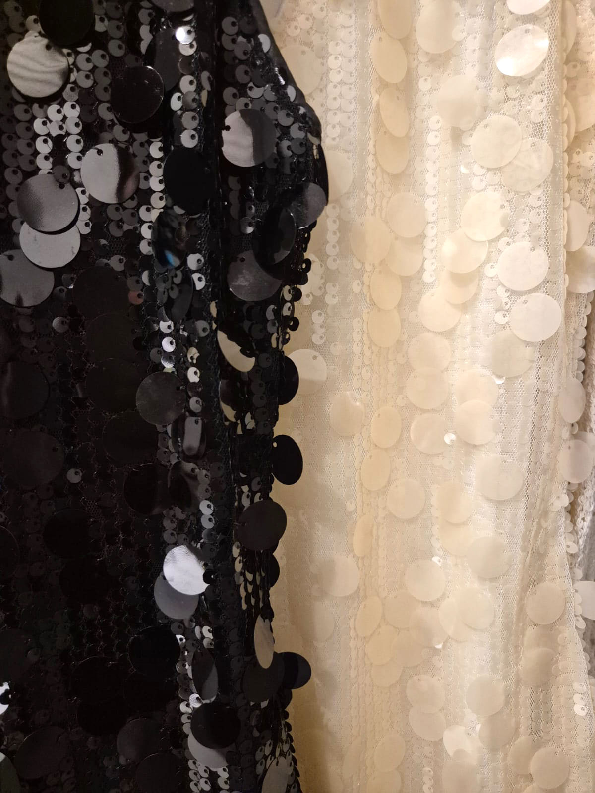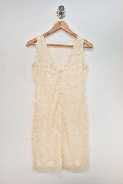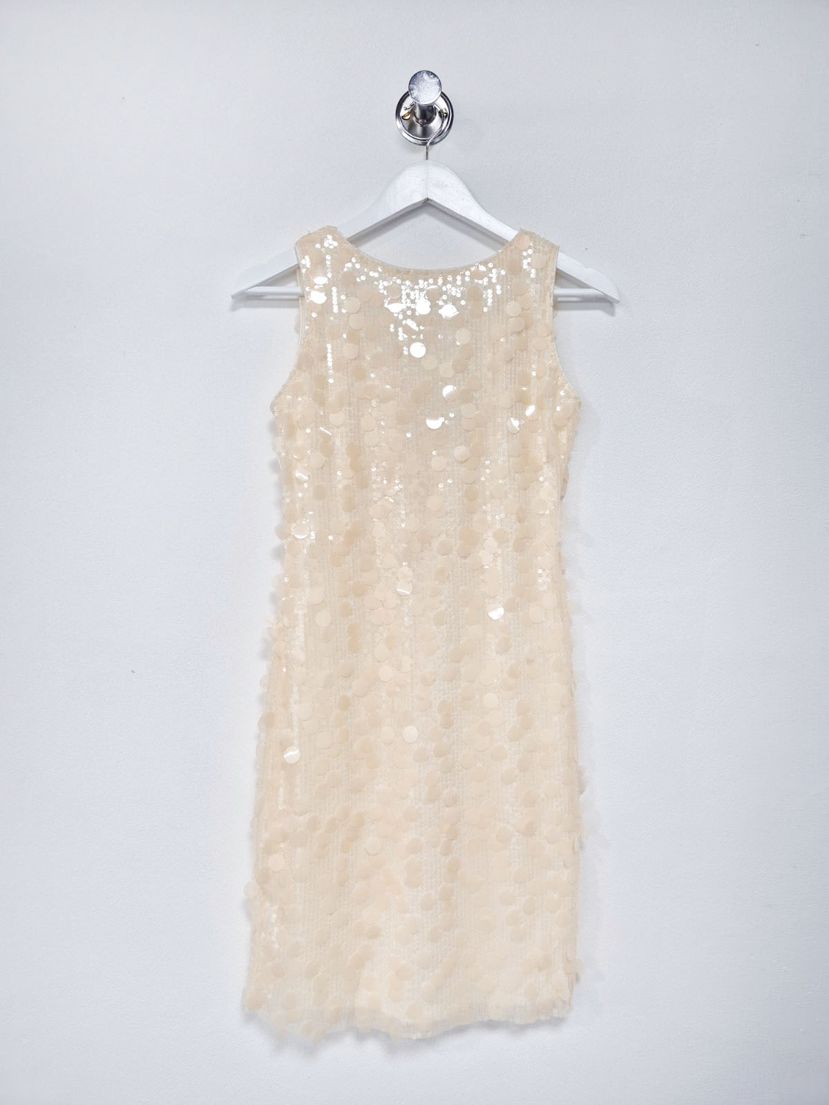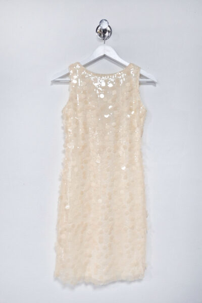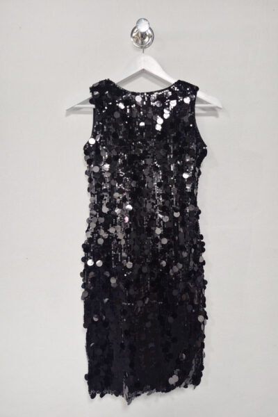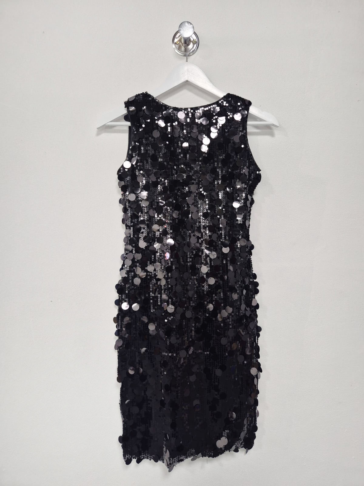 Vestido confeccionado en tela elastizada con lentejuelas, con forrería interna y cierre en la espalda.